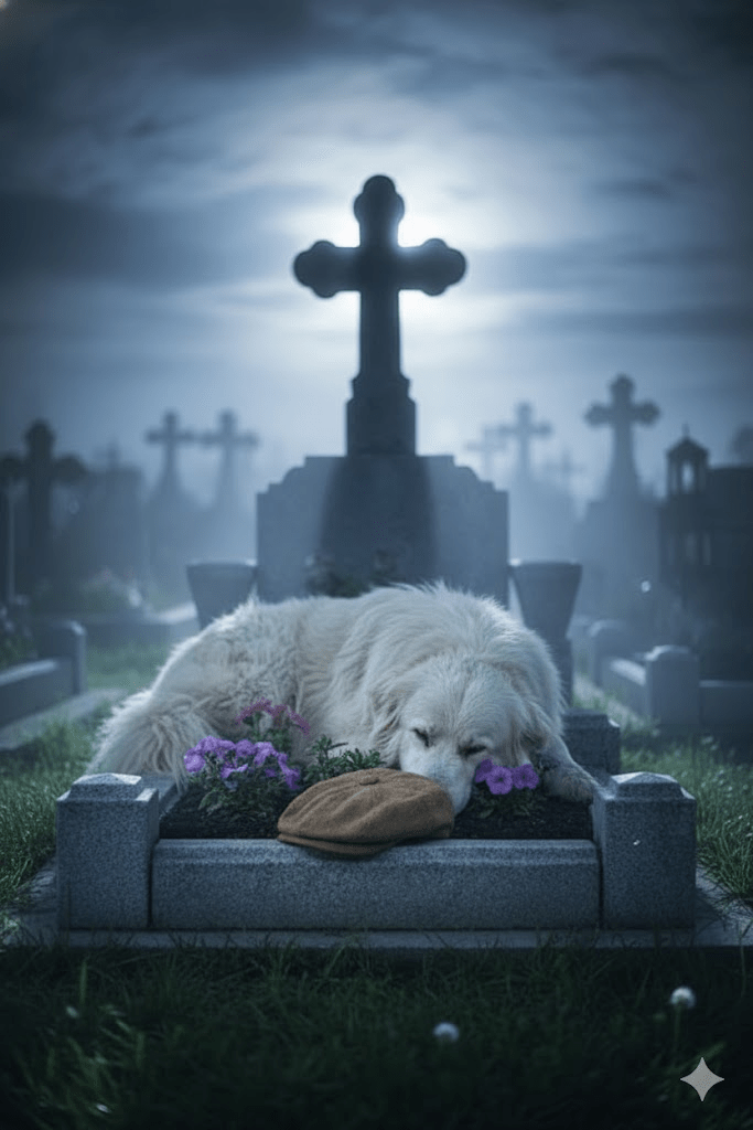 The Old Hill Cemetery, a place usually associated with quiet reflection and solemn goodbyes, had a new, unexpected, and utterly heartwarming resident. For weeks, a large, shaggy white dog, later affectionately named Barnaby by the few brave souls who approached him, had taken up a silent vigil at a particular grave. His presence was not fleeting; he was there day and night, through sun and rain, a living, breathing testament to an unspoken loyalty. Locals whispered stories, some of sorrow, others of wonder, but no one truly knew the story behind Barnaby’s unwavering devotion, or more importantly, the identity of the person he so faithfully guarded. His watchful eyes, often distant and filled with an ancient sorrow, spoke volumes of a bond that death could not sever, transforming a place of grief into a poignant tableau of enduring love.