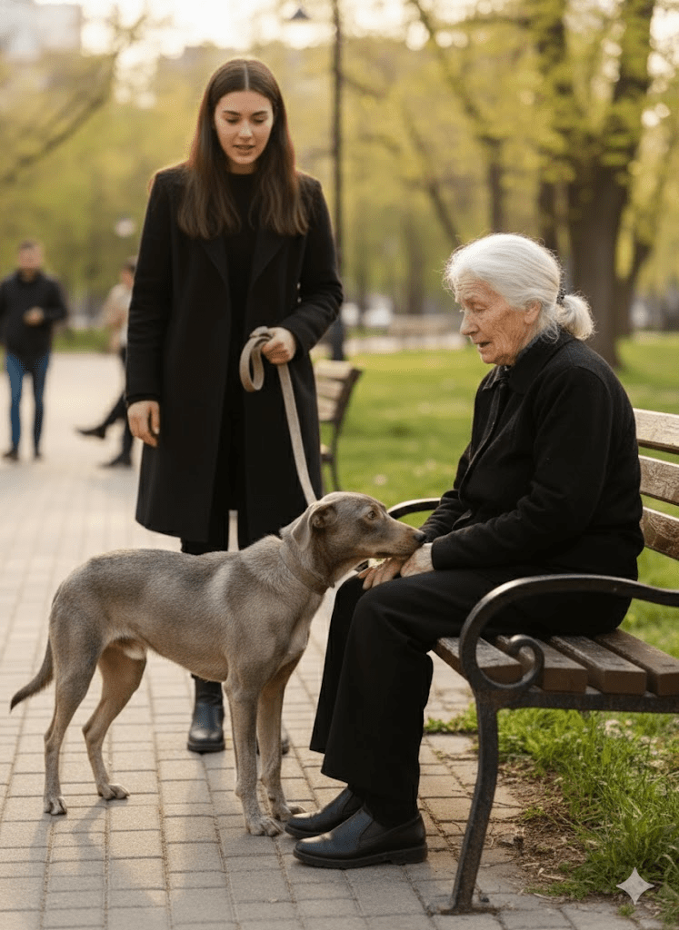 With Elara’s diligent care, Whisper’s transformation was remarkable. His fur grew back thick and shiny, his eyes brightened, and a playful spirit emerged. He became her constant companion, accompanying her on walks and even to the park where she studied. However, one afternoon, while at the park, Whisper did something unexpected. He darted towards a distraught elderly woman, nudging her hand and whining softly, as if sensing her grief.