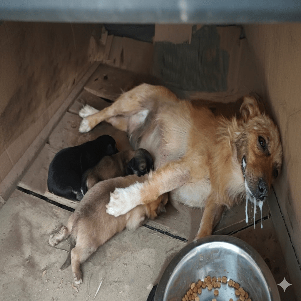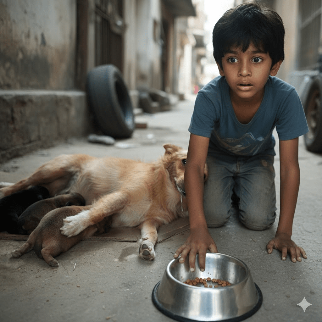Kai, though small, possessed a spirit far larger than his years. He raced home, breathless, to tell his grandmother, a woman known for her kindness to all creatures. Skeptical at first, but moved by the urgency in Kai’s voice, she followed him back to the alley. The sight confirmed Kai’s frantic tale. Tears welled in her eyes as she witnessed Luna’s suffering. They knew they couldn’t just stand by. But what could they do? They had no money for a vet, and the nearest animal clinic was miles away, an impossible journey on foot for an ailing dog and her newborns.