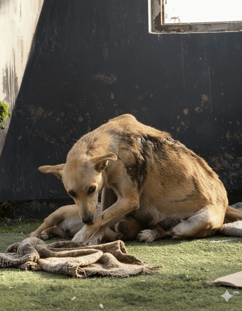 The dusty, sun-baked corner of the old abandoned warehouse had become home to Luna, a stray dog whose weathered coat told tales of countless struggles. Life had been a relentless series of hardships, each day a new battle for survival. Malnourished and weary, she had recently given birth to a litter of pups, but only one, a tiny, fragile creature, had clung to life. This sole survivor, whom Luna fiercely protected, was her entire world. Her eyes, though clouded with fatigue, held an unwavering glint of devotion as she nuzzled her pup, a silent promise of protection in a harsh, unforgiving world. The image captured her in a tender moment, a stark contrast to the gritty backdrop, a poignant testament to a mother’s enduring spirit against all odds.