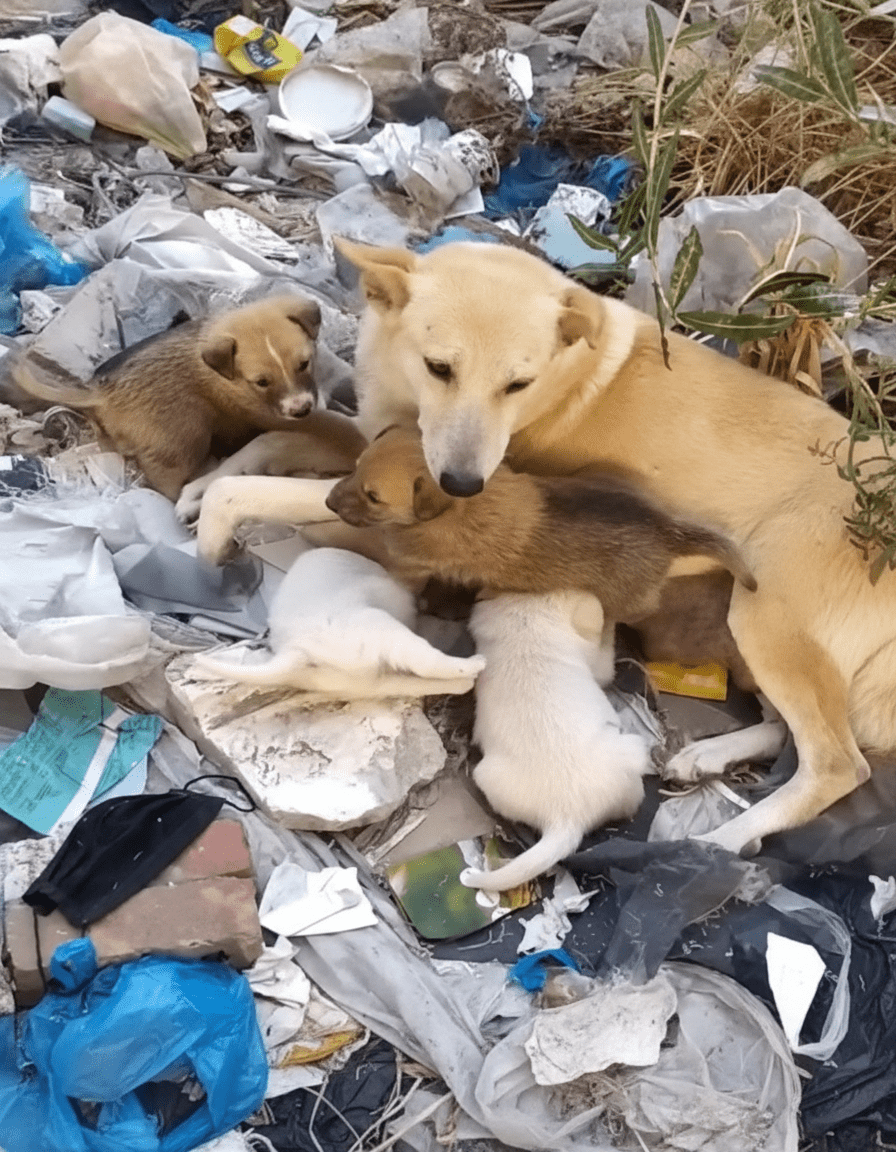 A Mother’s Valor Amid Garbage: The Stray Dog Who Refused to Abandon Her Pups