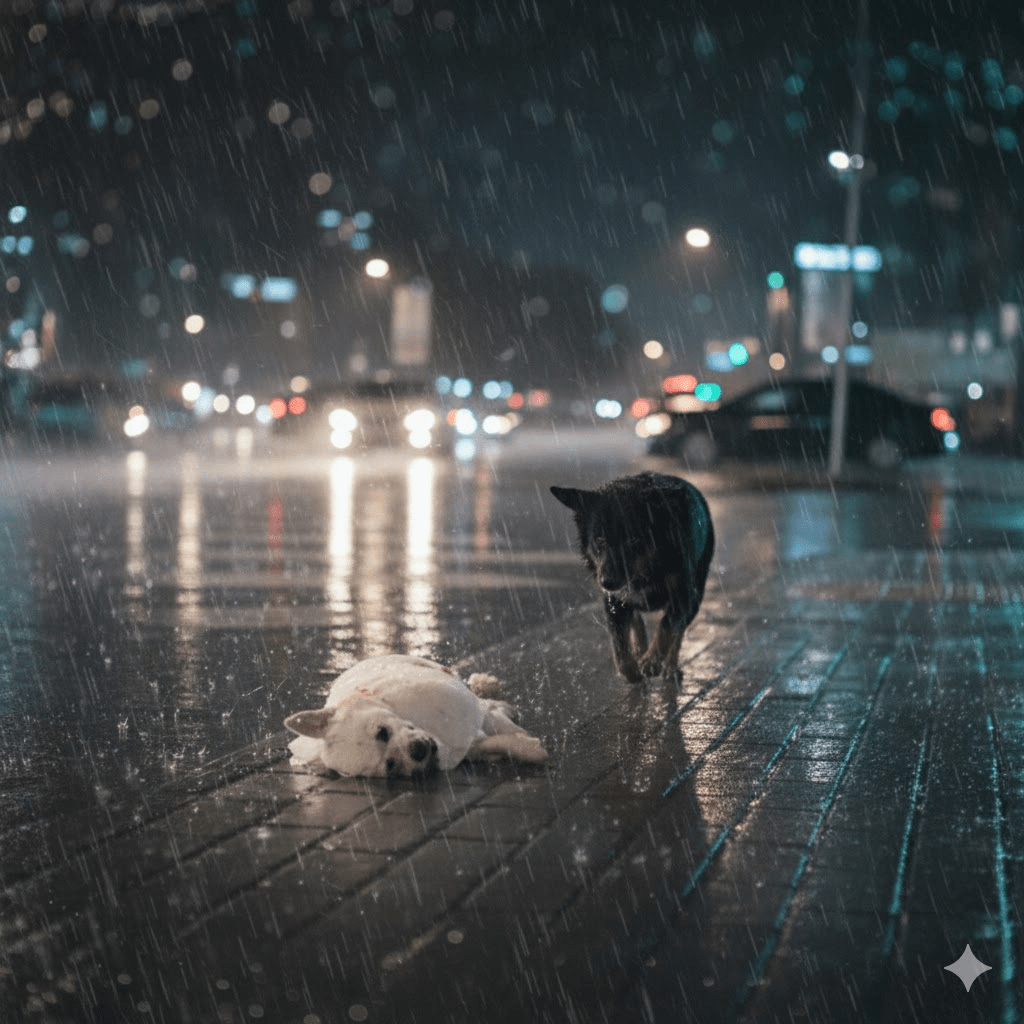 The world outside the circle of their immediate tragedy seemed to vanish, replaced by the symphony of the storm and the silent beat of two intertwined lives. This wasn’t merely a stray animal on a street; it was a testament to a bond so profound it defied the very elements, a stark reminder of the raw, unfiltered emotion that exists in the animal kingdom, often mirroring, and sometimes even surpassing, our own. The image captured that night, raw and unedited, quickly became a symbol of love, loss, and the silent, enduring strength found in the face of despair. It begged the question: what extraordinary twist of fate had brought these two souls to this desperate point, and what unforeseen turns would their story take?