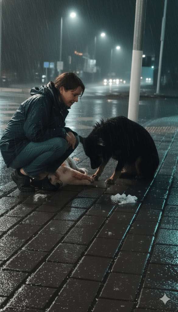 As dawn approached, painting the sky in shades of bruised purple and grey, the rain finally began to subside, leaving behind a world slick with moisture and reflection. It was then that a figure emerged from the pre-dawn gloom, a woman named Lena, on her way to an early shift at the local animal shelter. Her heart, already attuned to the silent suffering of strays, caught in her throat at the sight. Shadow, his fur matted and dripping, still sat beside the lifeless puppy. Lena, a veteran of countless rescue missions, recognized the signs of profound grief. She approached cautiously, speaking in soft, reassuring tones, her movements slow and deliberate. Shadow, normally wary of humans, offered no resistance, his eyes still fixed on his lost friend. The moment Lena knelt beside them, a wave of profound sadness washed over her, a silent acknowledgment of the tragedy she was witnessing. She knew, with a certainty that settled deep in her bones, that this was not just another stray, but a soul in desperate need of solace.