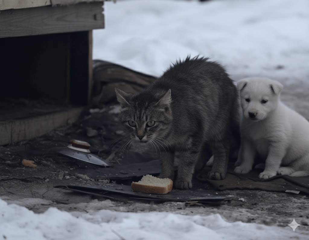 The first unexpected turn came not in the form of a human, but a lone, scruffy stray cat, initially drawn by the faint scent of discarded food nearby. Hesitantly, it approached the shivering huddle, its own gaunt frame a testament to a life of hardship. Instead of aggression, a curious empathy seemed to flicker in its emerald eyes. For several tense moments, the cat simply observed, before nudging a small, half-eaten piece of bread it had scavenged towards the hungry pups, a silent gesture of solidarity in a harsh world. It was a fleeting interaction, but one that hinted at the unexpected kindness that can arise even in the bleakest circumstances.