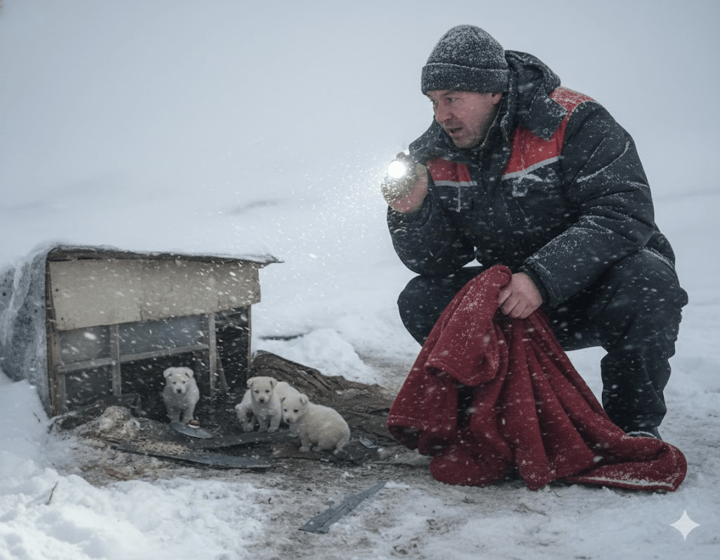 The biting winter wind howled a desolate tune across the frozen landscape, a chilling accompaniment to the silent cries of five tiny, helpless puppies huddled together for warmth. Their small, white bodies, barely visible against the snow-dusted ground, trembled not just from the cold, but from an overwhelming hunger and a profound sense of abandonment. Tucked away near the entrance of a dilapidated, makeshift shelter, their wide, innocent eyes peered out, reflecting a mixture of fear and a faint, flickering hope. Days had stretched into an eternity for these five souls, each sunrise bringing renewed emptiness as the scent of their absent mother faded further into memory. They were too young to comprehend the cruelty of their fate, yet their instincts screamed for the warmth, sustenance, and comfort that had been so cruelly denied. This image captures the raw vulnerability of their existence, a snapshot of their desperate plea before an unforeseen twist of destiny intervened.