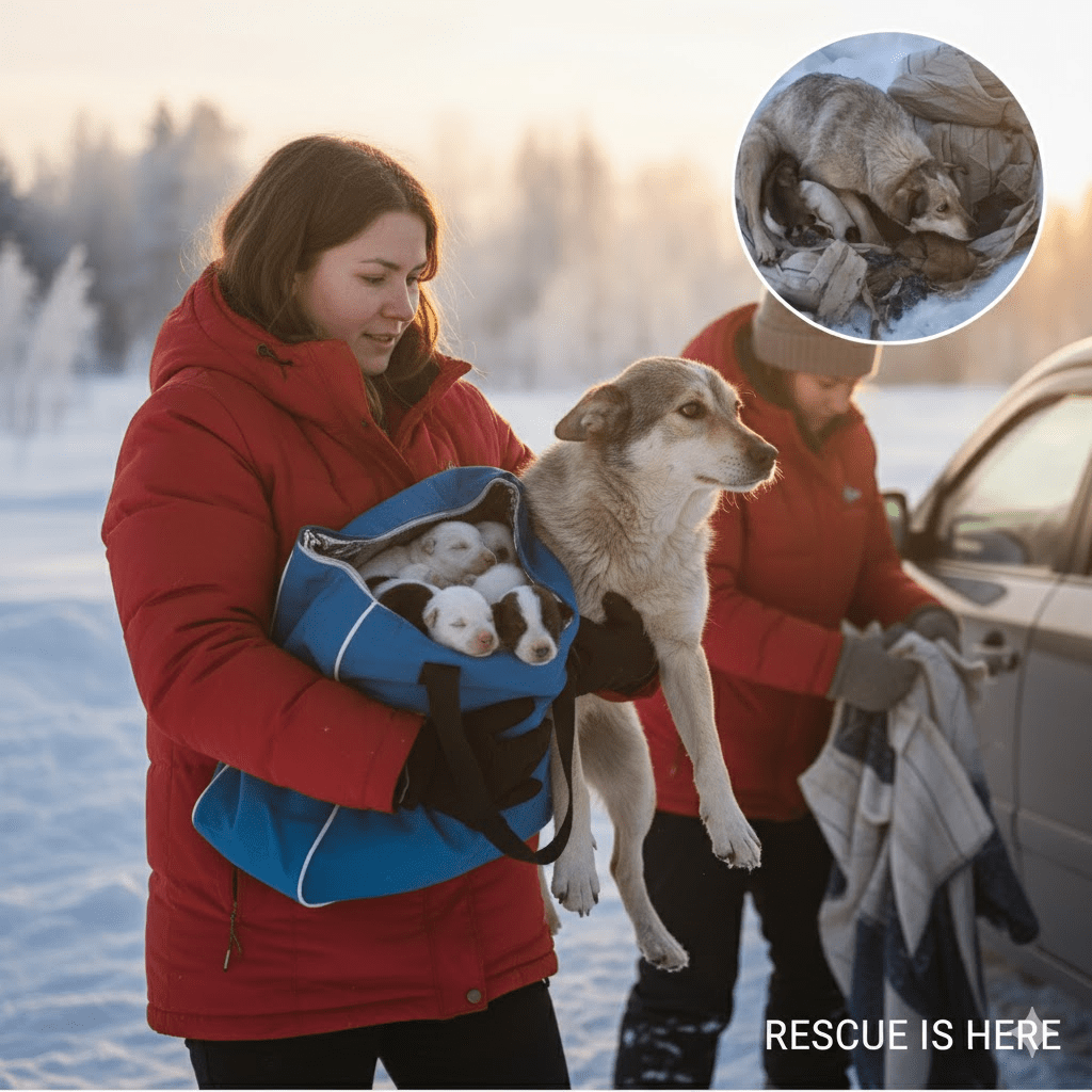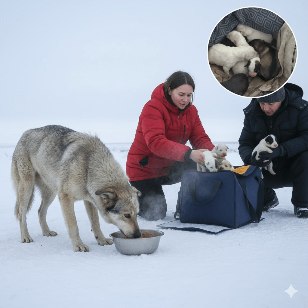 To facilitate the rescue, the team employed a clever psychological tactic. Rather than direct confrontation, they began leaving warm, heavily scented food a short distance from Snow and her pups. For two days, Snow warily watched, her hunger warring with her instinct to protect. On the third morning, driven by the gnawing ache of an empty stomach and the need to sustain her milk supply for her demanding litter, she finally ventured towards the food. This brief, calculated distraction allowed rescuers to swiftly and gently scoop up the shivering puppies, one by one, placing them into a pre-warmed carrier. Snow, initially alarmed, quickly understood the benevolent intent as she saw her puppies being moved to safety, rather than harmed. This moment, where trust was earned in the bleakest of circumstances, was a powerful turning point.