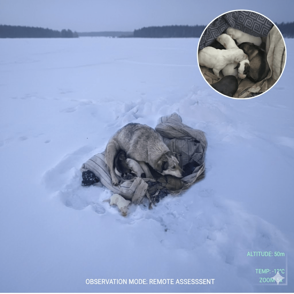The most heart-wrenching twist emerged during the drone’s reconnaissance. Among the huddled puppies, one tiny, almost translucent form lay slightly apart, barely moving. Its fur, whiter than the snow, suggested an albino puppy, a genetic rarity. While visually striking, albinism in animals often comes with health complications, including heightened sensitivity to light and increased vulnerability to cold. The discovery of this uniquely challenged puppy within the litter magnified the urgency of the rescue, adding another layer of complexity to an already critical situation. It became clear that this wasn’t just a rescue; it was a race to save a truly exceptional and vulnerable life, underscoring the preciousness of each individual animal.