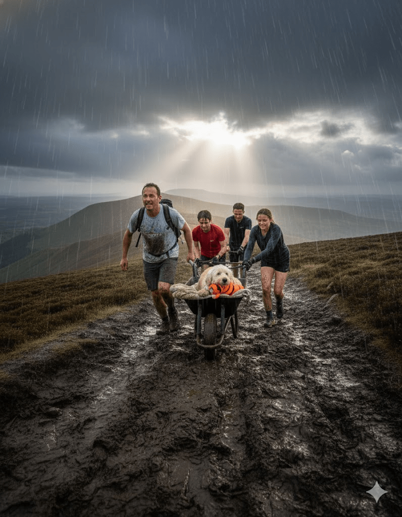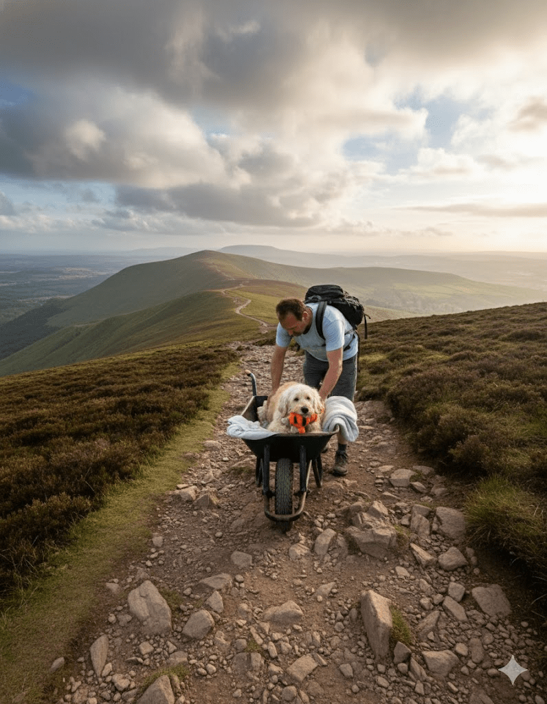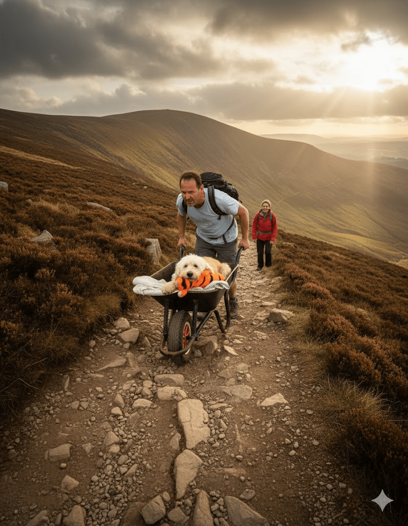 The Welsh mountains, with their rugged beauty and unpredictable weather, have always been a test of endurance for hikers. But for one particular journey up Pen y Fan, the highest peak in Southern Wales, the challenge wasn’t just physical—it was profoundly emotional. This is the story of Max, a golden retriever whose unwavering spirit, aided by the boundless love of his owner, Mark, transformed a routine hike into an unforgettable saga of determination, unexpected twists, and an unbreakable bond that touched the hearts of many. What began as a simple desire to share one last adventure with a beloved companion became a testament to love, resilience, and the extraordinary lengths we go to for those we hold dear.