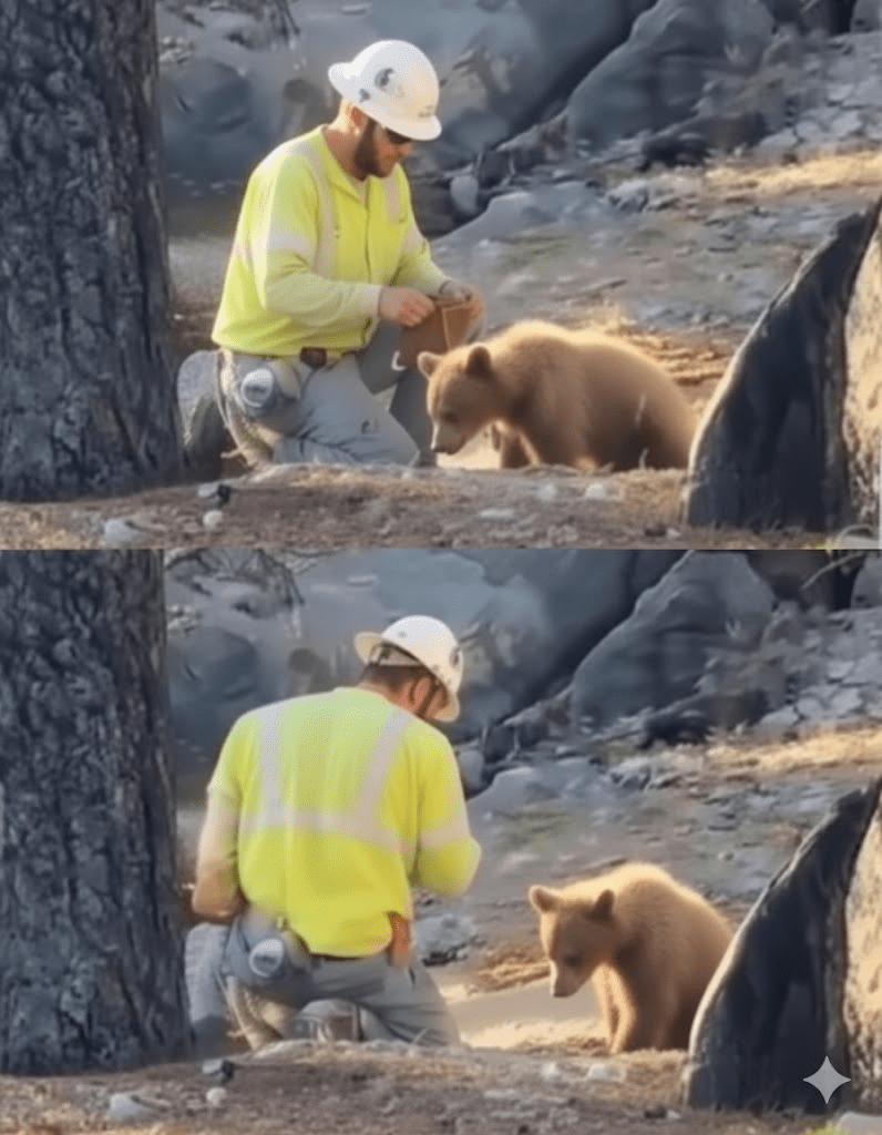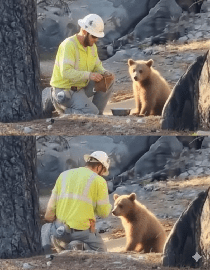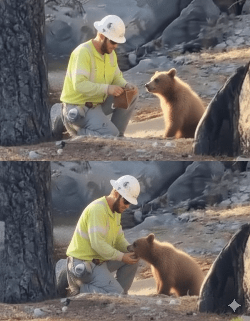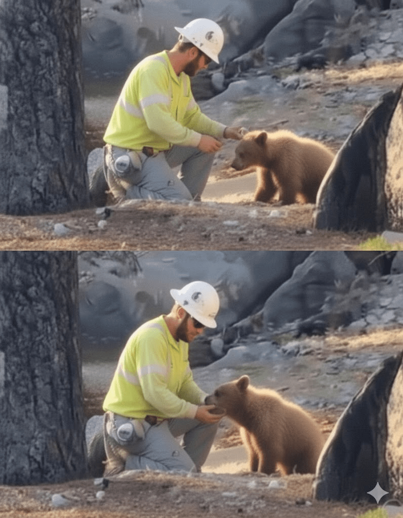 In the rugged wilderness of the Sierra Nevada, where towering pines meet granite peaks, a routine wildlife survey took an extraordinary turn, captivating the hearts of those who witnessed it. Lead wildlife technician, avid outdoorsman, and seasoned rescuer, Mark Johnson, known for his calm demeanor in high-stakes situations, found himself in an unexpected face-to-face encounter with a lost bear cub. The day had started like any other, tracking migratory patterns and assessing the health of local animal populations. But as the afternoon sun began to cast long shadows through the dense forest, a series of events unfolded that would leave an indelible mark on Mark and underscore the delicate balance between humanity and the wild. What began as a distant cry for help quickly transformed into a surprising interaction, challenging conventional wisdom about human-wildlife relationships and reminding everyone of the inherent trust that can sometimes bridge the gap between two different worlds.