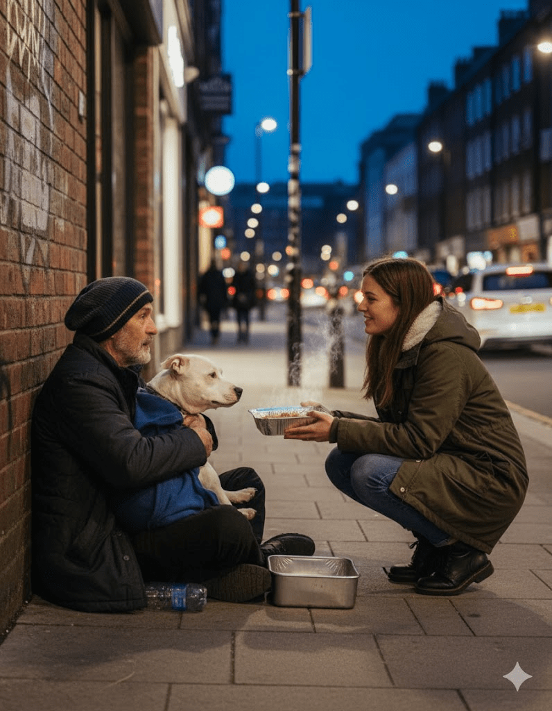 Suddenly, a young woman named Sarah approached, not with the usual hurried glance, but with a warm smile and a container of hot food. She crouched down, offering it to Arthur, and for a moment, the world seemed to hold its breath. Buster, usually wary of strangers, gave a soft whine and nudged Arthur’s hand towards the offering. Sarah, a veterinary student, had noticed Buster’s slight limp and felt an immediate pull to help. This simple act of kindness, a shared meal on a cold night, was the first unexpected twist.