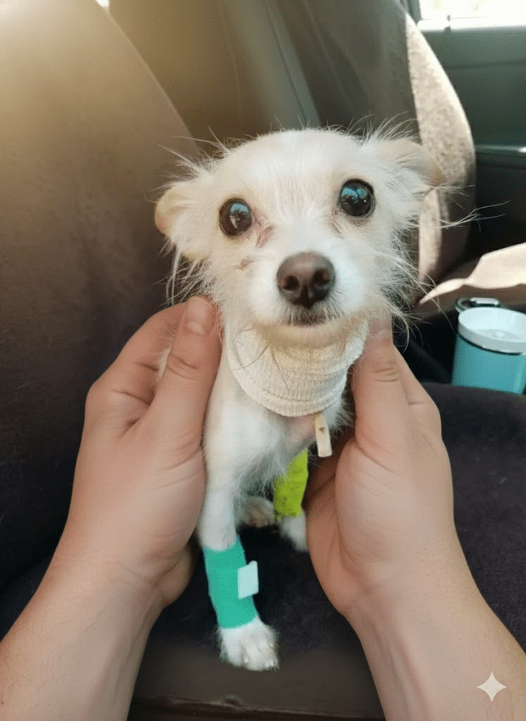 Autumn’s initial days with her rescuers were a delicate dance of recovery. Her tiny body, marked by the leash’s cruel embrace and the lingering effects of starvation, required constant, vigilant care. Bandages adorned her small legs, a testament to her fragile state, yet in her wide, soulful eyes, a glimmer of trust slowly began to emerge. Each gentle touch, every soft word, was a step away from the trauma she had endured, building a bridge from fear to tentative hope.