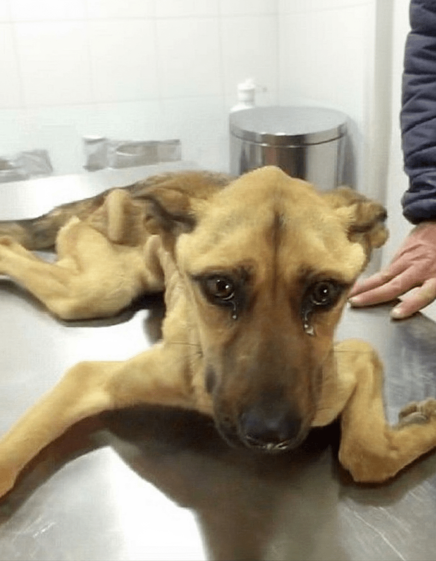 It all began on a cold morning in Granada, Spain. A resident noticed what looked like a motionless dog lying near a pile of discarded boxes behind an abandoned warehouse. When they approached, they realized the “lifeless” form was breathing—barely. The emaciated dog tried to lift her head but couldn’t. Her body was so depleted that every movement looked painful. The resident immediately contacted a local animal rescue group known for taking on the most desperate cases. Within minutes, a small team arrived and rushed her to a nearby veterinary clinic.
