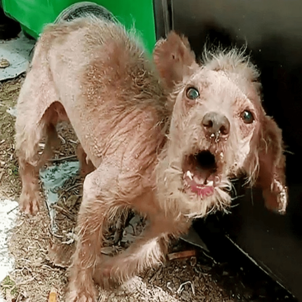 The chilling image of a small, emaciated dog, her skin raw and inflamed, whimpering near a grimy dumpster, painted a…