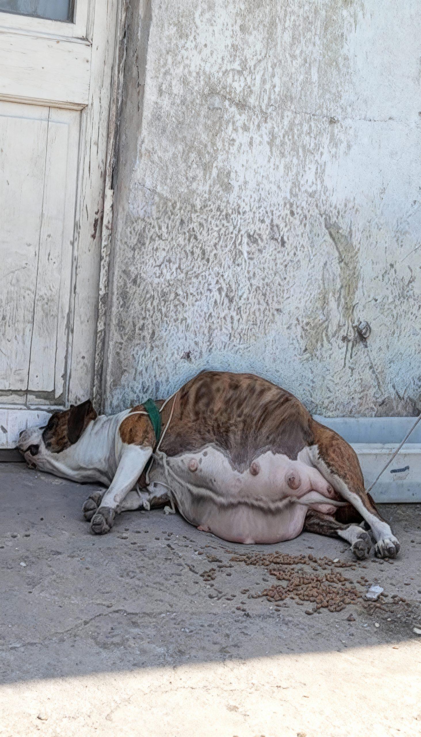 The image before you captures a heartbreaking scene: a pregnant dog, Kasi, lying emaciated and alone on cold pavement, her…