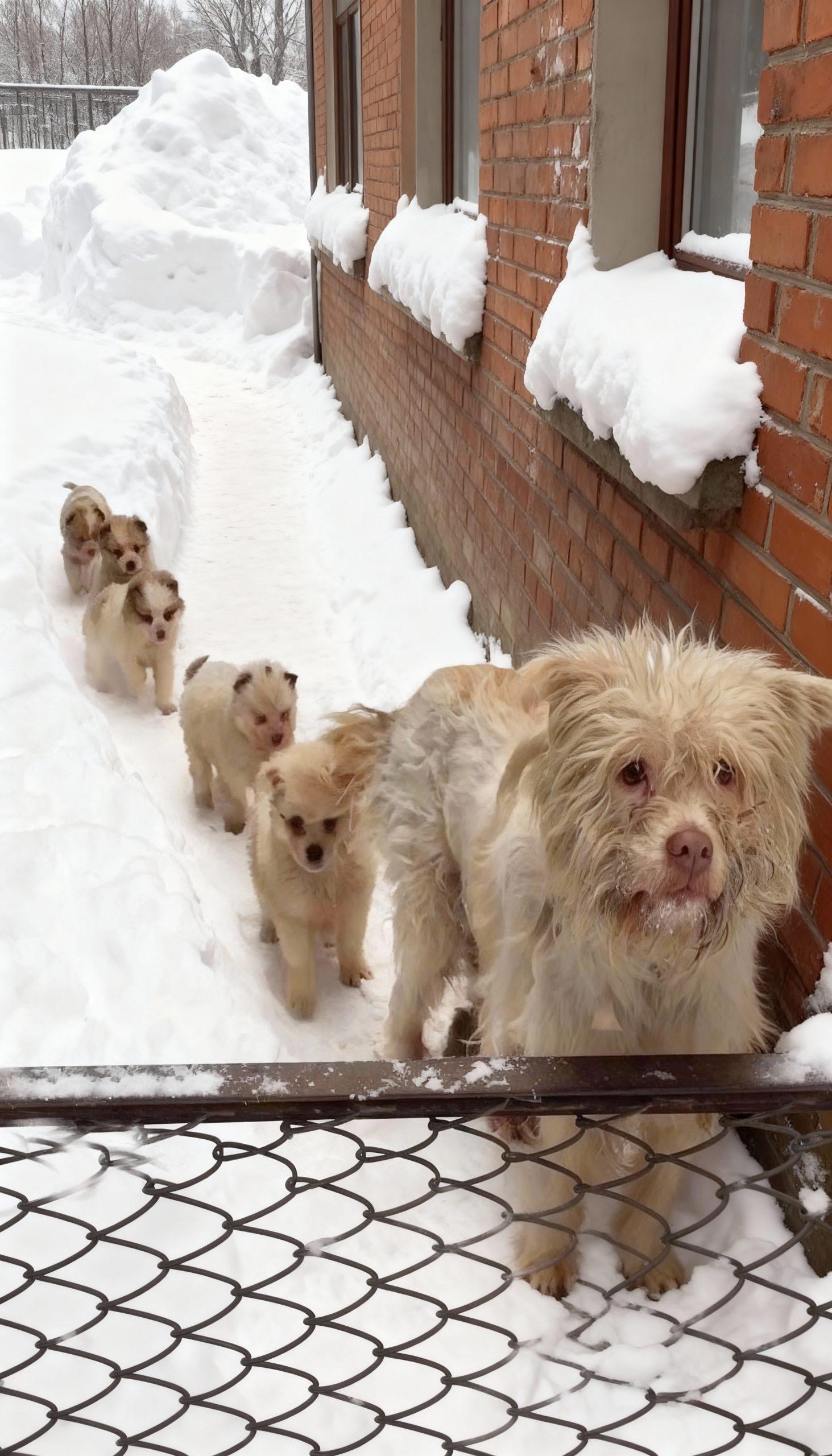 The biting winter wind whipped through the desolate alleyway, painting everything in shades of white. A mother dog, her fur…