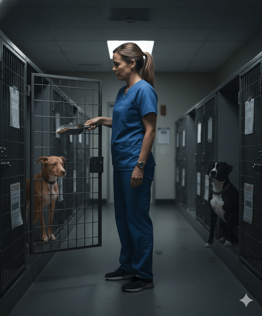 The day had started like any other for Maggie, a dedicated volunteer at the local animal shelter. Her morning rounds were usually filled with a mix of hope and heartbreak, but today, a heavy cloud hung over the facility. Two dogs, a timid terrier mix named Peanut and a boisterous black-and-white bully breed named Shadow, were on the euthanasia list, their time running out. Despite their sweet natures, they hadn’t found homes, and the shelter was overflowing. Maggie had spent weeks trying to find them fosters, posting their pictures, and sharing their stories, but to no avail. A sense of quiet despair settled in her as she prepared their last meals, each scoop of kibble a painful reminder of what was to come.