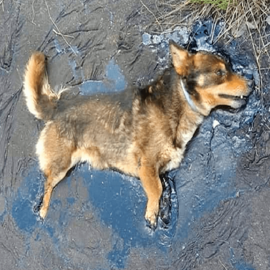 The tranquil morning in Suwałki, Poland, was shattered by a desperate cry that echoed across the newly laid road. It was a sound that made the hearts of local construction workers skip a beat – a pitiful whimper, thick with fear and struggle. As they rushed towards the source, a horrifying sight unfolded before their eyes: a small, brown dog, later named Farcik, was hopelessly ensnared in the glistening, black tar.