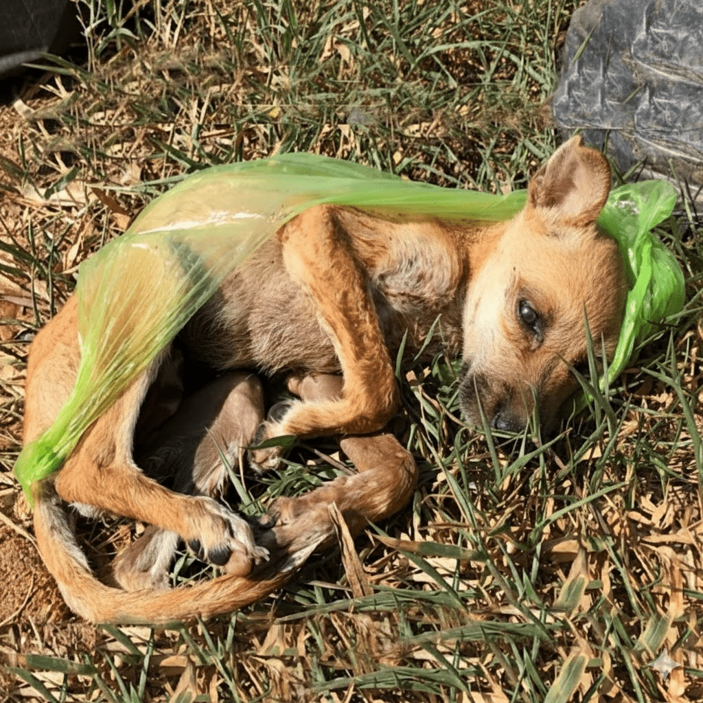 The scorching sun beat down on the parched earth, casting long, stark shadows. Amidst the dry, brittle grass, a small, emaciated form lay motionless, partially covered by a discarded plastic bag. It was a puppy, barely more than skin and bones, her eyes crusted shut, her breathing shallow and ragged. Left for dead, she was a silent testament to unimaginable cruelty, a tiny life teetering on the precipice of oblivion.