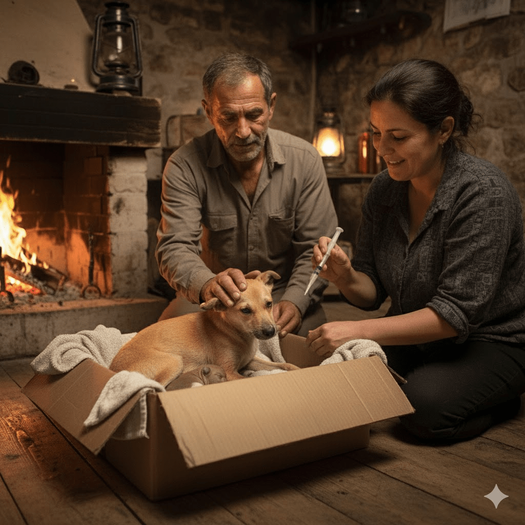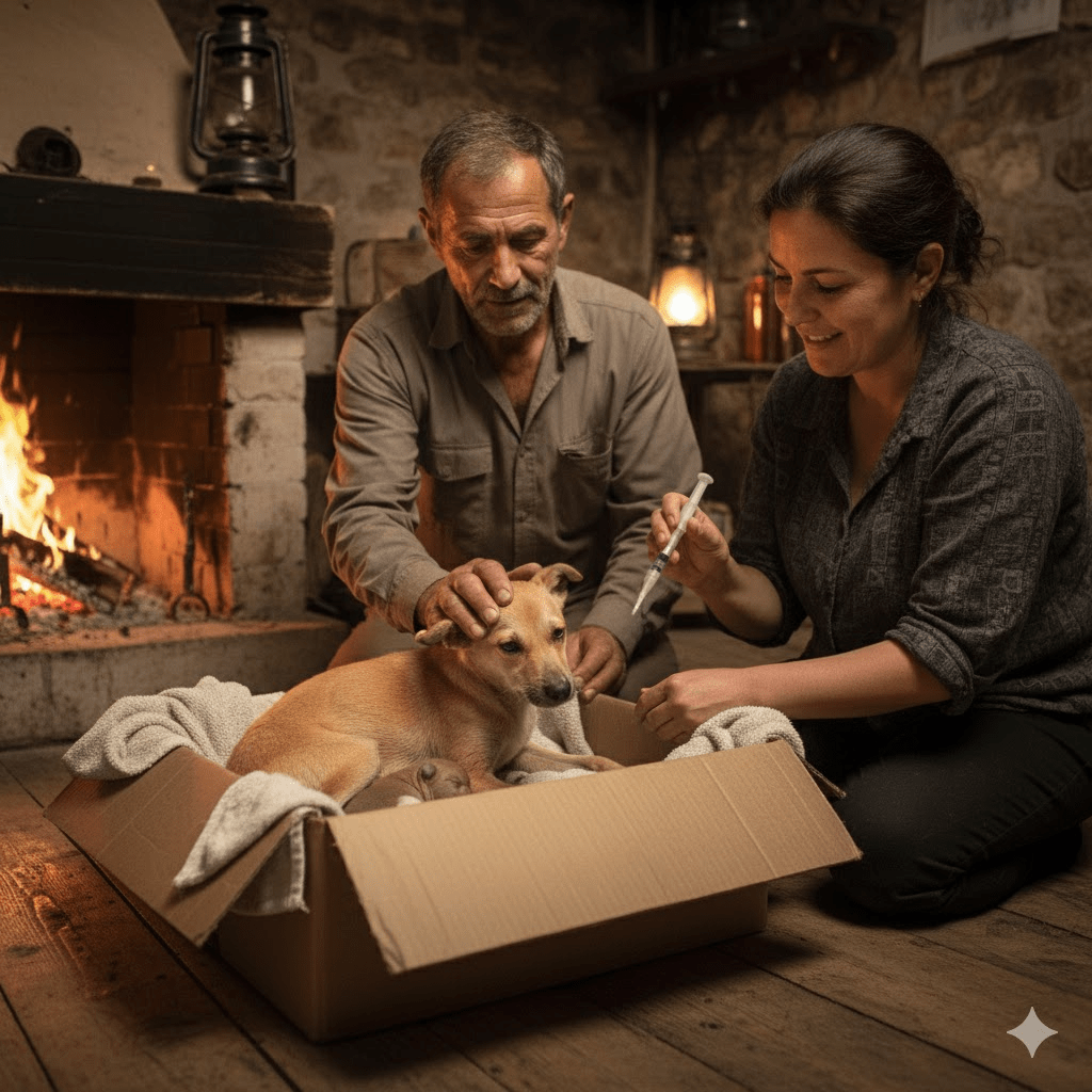 The first few days were a desperate struggle. Hope was too weak to nurse her own puppies, her body ravaged by starvation and dehydration. The farmer and his wife took turns, painstakingly feeding the tiny newborns with a syringe, dropper by dropper, praying for a miracle. Hope herself needed constant care, small amounts of nutrient-rich liquids given every hour, alongside gentle massages to stimulate her circulation. There were moments when they thought they would lose her, when her breath grew shallow and her body felt cold. But each time, she would rally, her weak tail wagging almost imperceptibly as if to thank them for their tireless efforts.