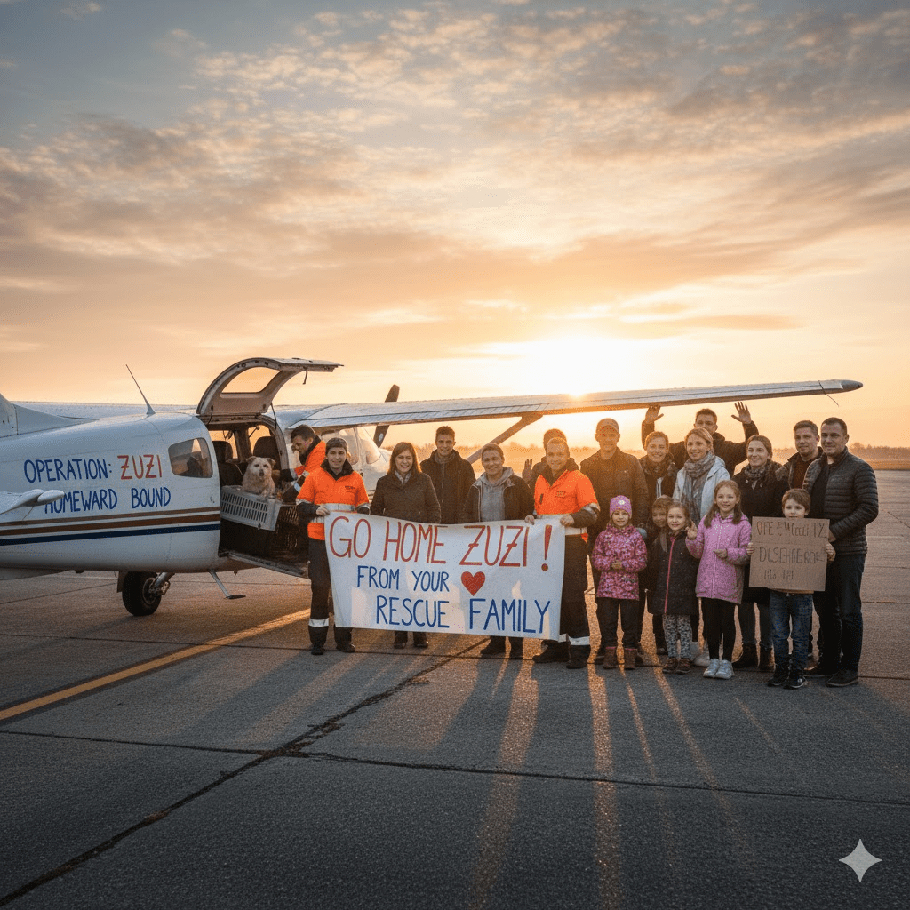 In an incredible turn, the Petersons immediately began making arrangements for Zuzi’s journey home. The rescue organization, deeply moved by the story, launched a public appeal to fund her transport, which quickly gained traction on social media. People from all walks of life, touched by Zuzi’s unbelievable odyssey, donated generously, eager to be a part of her fairytale ending. This collective act of goodwill transformed a simple rescue into a heartwarming community effort.