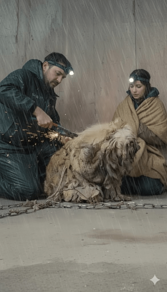 The relentless downpour mirrored the despair etched into the very being of a dog named Rusty. Chained to a desolate wall, his matted fur, once a vibrant golden, was now a sodden, muddy shroud. For months, perhaps even years, Rusty had known only the biting cold of neglect and the crushing weight of solitude. His eyes, barely visible through the grime, held a vacant stare, devoid of the sparkle that defines a dog’s spirit.