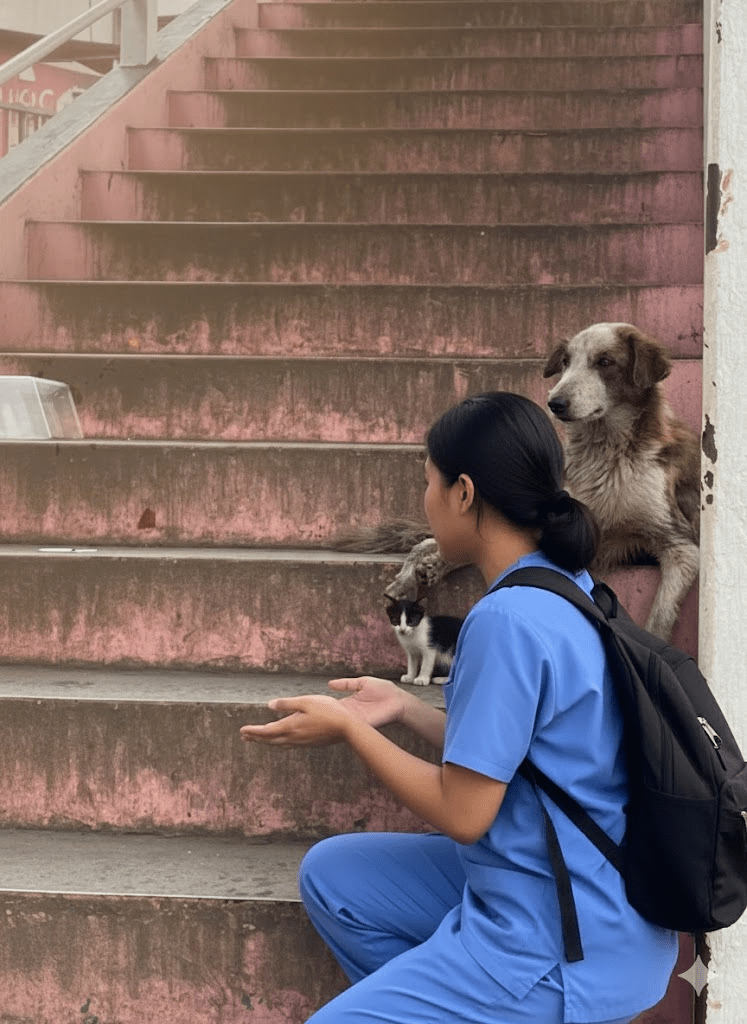 The dusty pink steps of a pedestrian overpass in Pasay, Manila, told countless stories, but none as poignant as that of a scruffy, resilient dog who had made them her temporary home. With fur matted and eyes that held a lifetime of quiet observation, she was a silent fixture, her presence often unnoticed amidst the bustling rhythm of the city. She was just one of the many voiceless souls in a metropolis that teemed with life, yet often overlooked its most vulnerable. This dog, later to be named “Rosie” for the faded color of her sanctuary, was a stark reminder of the over 1200 dogs and 200 cats in desperate need of shelter and care in the region – a crisis managed by a tireless guardian whose resources were stretched thin. Little did Rosie, or anyone, know that her solitary vigil on those steps was about to become the unexpected prologue to a series of events that would intertwine lives, challenge perceptions, and ultimately redefine what it means to be truly seen.