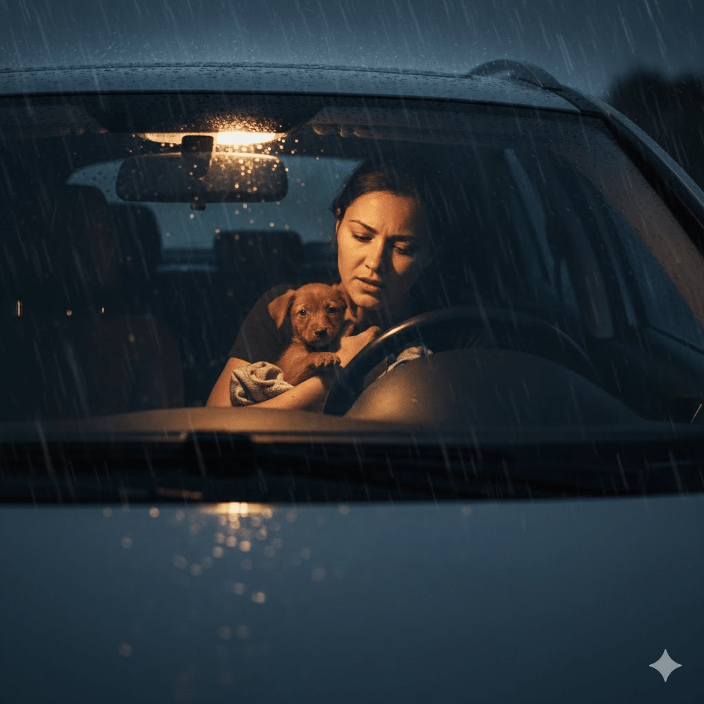 Clara carefully approached, her movements slow and reassuring. Alice, too weak to flee, could only watch with wide, vulnerable eyes. Clara gently scooped up the trembling pup, her heart aching at the fragile weight. A veterinary clinic was miles away, and night was falling. The immediate challenge was survival; Alice needed warmth, water, and nourishment Clara could not immediately provide on the isolated road. A sudden storm, unpredicted by the local forecast, began to gather on the horizon, threatening to further complicate their desperate journey.