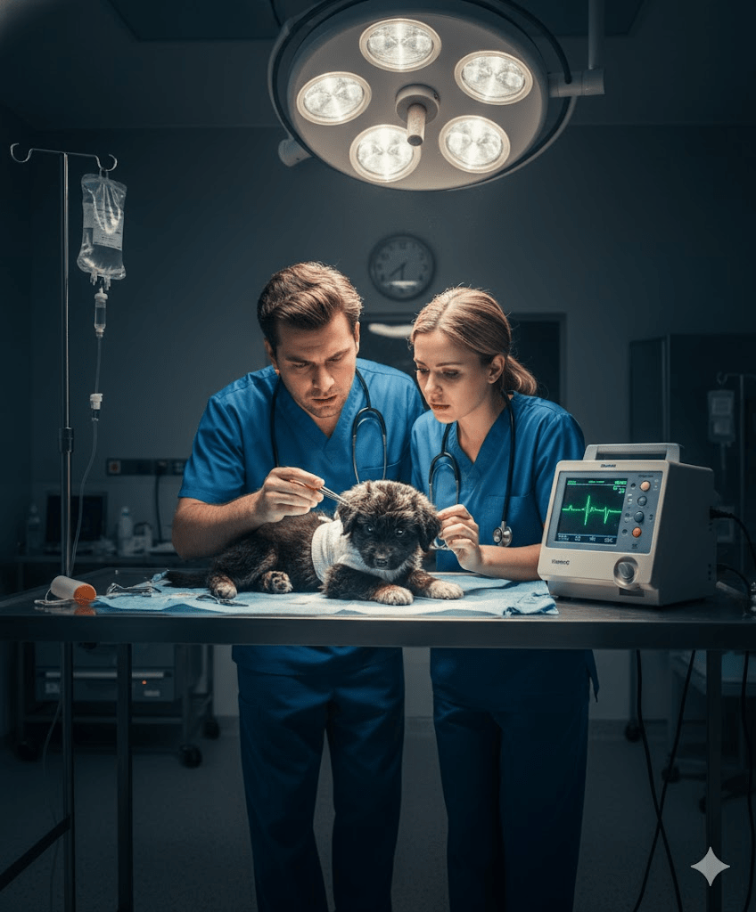 Arriving at the emergency veterinary clinic, the situation quickly escalated. The puppy, whom the team affectionately named “Courage,” was not only severely anemic from blood loss due to the hundreds of ticks but also suffering from extreme hypothermia and dehydration. Vets and technicians worked feverishly, carefully plucking ticks one by one while simultaneously administering IV fluids and warm compresses. Just as they believed they were making headway, Courage’s heart rate plummeted, flatlining for agonizing moments. A sudden, unexpected complication threatened to steal him away even after he had been found.