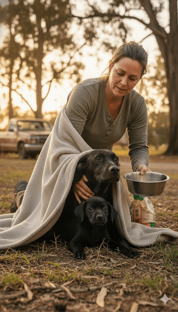 Sarah, accustomed to such wary reactions, spoke softly, her voice a calming murmur as she slowly approached. She laid out a small amount of kibble and a bowl of water, retreating a safe distance to observe. It was a tense standoff. Luna eyed the offerings with suspicion, her gaze darting between the food and Sarah. Pip, meanwhile, seemed to sense a shift in their fortunes, his tiny tail giving a tentative wag before shrinking back under his mother’s protective embrace. The first glimmer of hope arrived when Luna, driven by the desperate pangs of hunger and an even stronger desire to feed her pup, cautiously crept forward. She devoured the food in a matter of seconds, then nudged Pip towards the water, a silent command for him to drink. It was a small victory, but a significant one – a tiny crack in the wall of their fear.