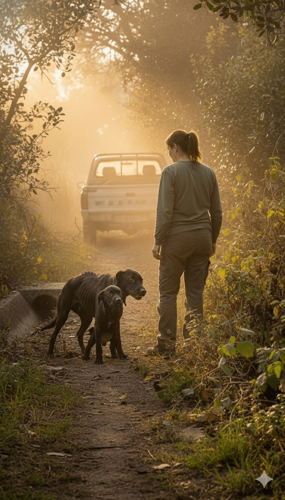 Their discovery was purely accidental, a stroke of serendipity in a world often too busy to notice the quiet suffering of its creatures. Sarah, a local veterinarian technician known for her unwavering dedication to animal welfare, was on her way to a remote farm to assist with a difficult calving. Her route took her down a rarely used dirt track, flanked by dense thickets of scrub and overgrown fields. It was the faint whimpering, barely audible above the hum of her aging pickup truck, that caught her attention. At first, she dismissed it as a wild animal, perhaps a rabbit caught by a predator. But something tugged at her, a professional instinct honed over years of encountering animals in distress. She pulled over, the dust settling around her vehicle, and cautiously ventured into the undergrowth. There, nestled precariously close to a drainage ditch, she found them: Luna, her head bowed protectively over Pip, both skeletal and vulnerable. The mother dog, despite her weakness, let out a low growl, a final, desperate attempt to ward off this new threat.