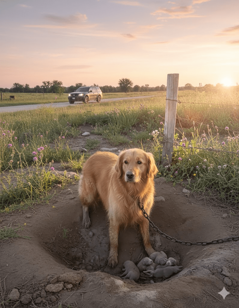 The chill of the pre-dawn air bit at Sarah’s face as she sped down the deserted highway, the rhythmic hum of the tires her only companion. Her eyes, red-rimmed from lack of sleep, were fixed on the ribbon of asphalt stretching into the darkness. She was fueled by a potent cocktail of exhaustion, adrenaline, and a fierce determination to reach her destination. A grainy photo, sent by an anonymous tipster just hours earlier, was burned into her mind: a golden retriever, matted and mud-caked, eyes pleading, chained amidst a desolate landscape, a newly dug pit beside her.