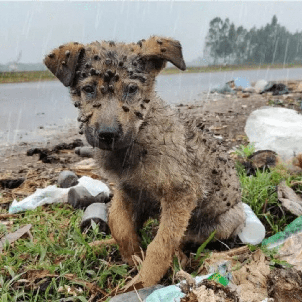 The incessant drizzle mirrored the desolation etched upon the landscape, a scene all too common on the fringes of urban sprawl where neglect and waste intermingle. It was here, amidst the sodden refuse and the indifferent rumble of distant traffic, that a tiny, mud-caked form sat shivering, its fur a matted tapestry of dirt and parasitic burdens. This was not a scene from a fictional tale, but a stark reality unfolding on a cold, grey afternoon. The small dog, a mere pup, its eyes wide with a mixture of fear and a flicker of desperate hope, was a testament to unimaginable hardship. Its body, thin and weakened, was almost entirely obscured by an infestation of engorged ticks, each one a grim testament to its prolonged struggle for survival.