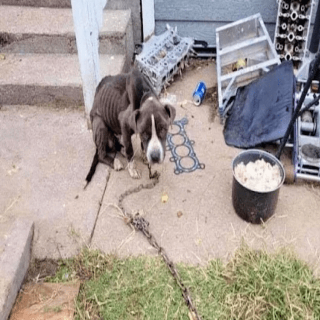 When Officer Miller arrived, he found Chevelle barely responsive, a living skeleton anchored by a heavy, rusty chain. The immediate priority was medical attention, but Chevelle’s owner, surprisingly cooperative, claimed to have been overwhelmed by personal hardships, leading to the dog’s dire state. A glimmer of hope appeared when a local rescue, “Second Chances,” stepped in, offering to take Chevelle, initially believing it would be a straightforward, albeit difficult, recovery.
