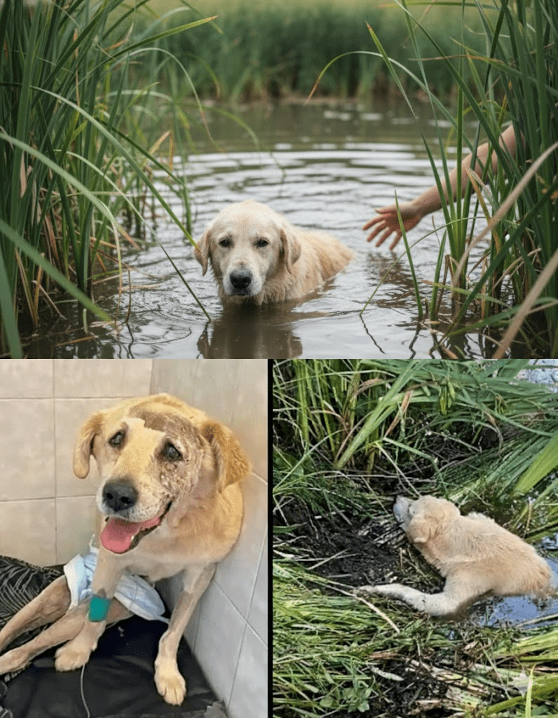 The first unexpected turn came not in a bustling city shelter, but in the tranquil, reedy edges of a hidden pond. Days after his initial discovery, when hope was fading for any meaningful intervention, a local wildlife enthusiast, exploring the area, stumbled upon a startling sight. The same golden dog, weaker now and barely recognizable, had somehow dragged himself into the murky water, perhaps seeking a final, desperate reprieve from his pain or the relentless heat. He was barely afloat, his head just above the waterline, a silent plea in his eyes as he struggled to keep himself from succumbing to the depths. It was a harrowing moment, confirming the dog’s sheer will to survive against impossible odds.