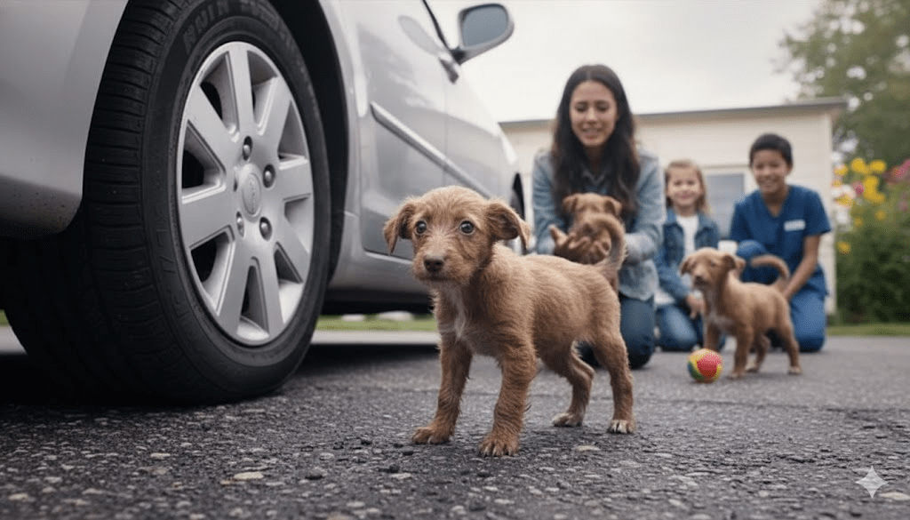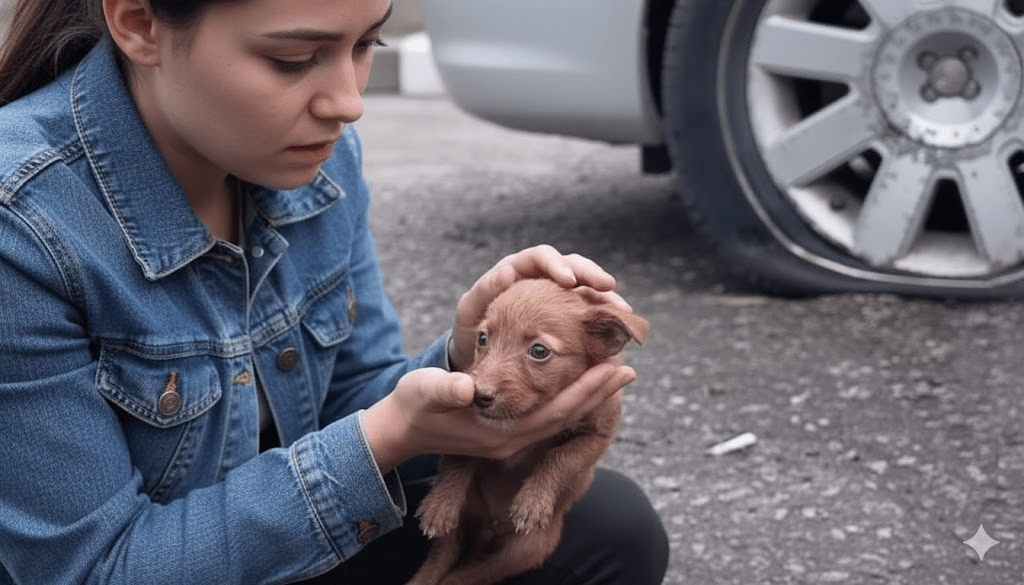 The scene was heartbreakingly familiar, yet each instance feels like a fresh wound. On a dreary morning, nestled precariously close to the worn tire of a parked car, lay a tiny creature fighting for her life. Her fur, matted with mud and rain, clung to a skeletal frame. Her eyes, wide and filled with an ancient sorrow, seemed to plead for a kindness she had likely never known. This was Alice, a puppy no bigger than a man’s hand, abandoned and left to fend for herself against the indifferent concrete jungle. Her shallow breaths were a testament to a flickering will to live, a silent scream against the cruelty of her circumstances. The world had dealt her a brutal hand, but as fate would soon reveal, Alice’s story was far from over.