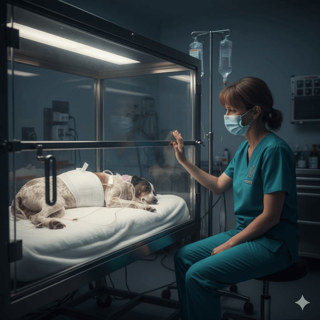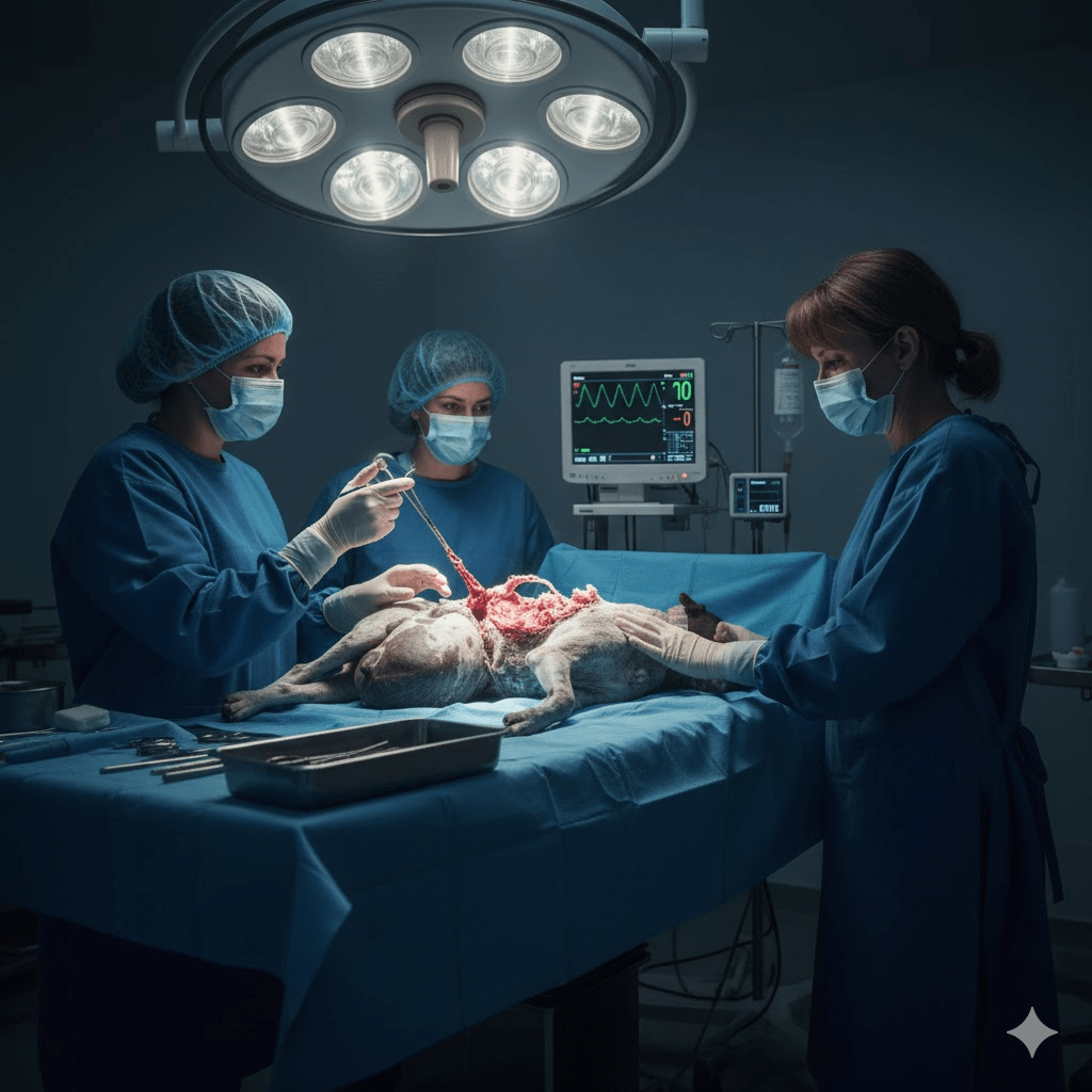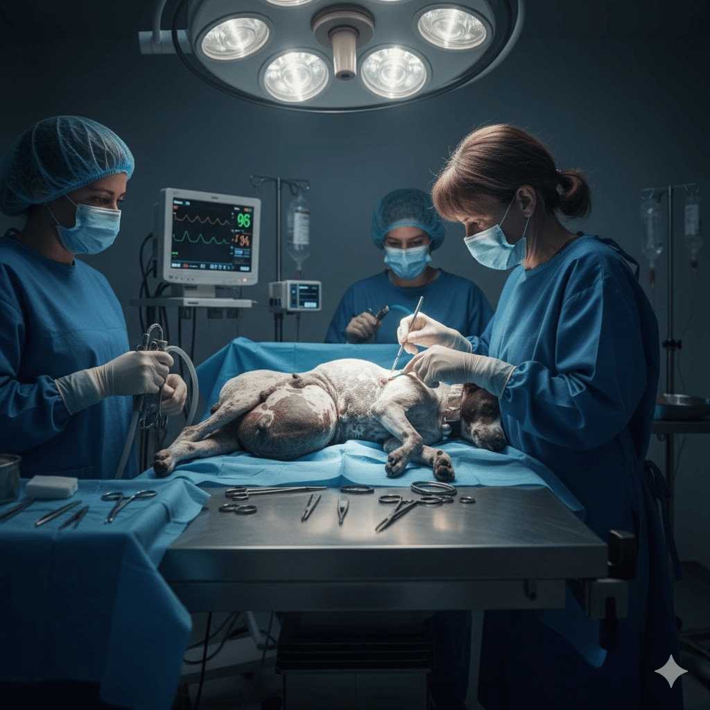 Upon initial examination, the veterinary team discovered that Hope’s massive abdominal growth wasn’t merely a tumor; it was a deeply embedded, necrotic mass that had fused with surrounding tissues, making surgical removal a terrifyingly complex prospect. The risks were enormous – internal bleeding, infection, and the shock of such an extensive procedure on an already frail body. Dr. Eleanor Vance, the lead surgeon, a woman known for her unwavering resolve, confided to her team that Hope’s chances were slim, perhaps less than 10%. Yet, looking into Hope’s tired but trusting eyes, Dr. Vance couldn’t bring herself to give up. The decision was made to proceed with the surgery, a marathon operation that would push the limits of veterinary science and human endurance.