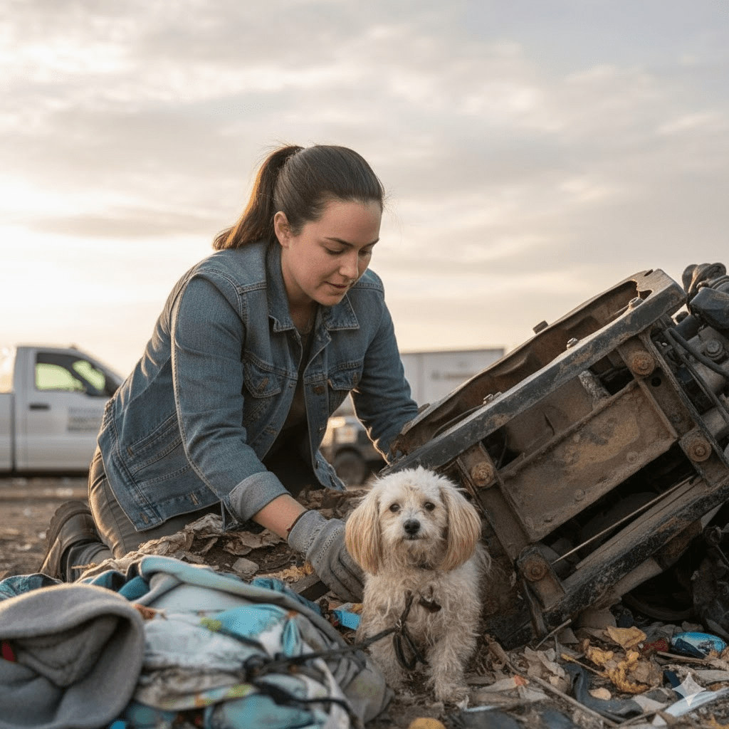 One chilly afternoon, a local animal welfare volunteer, Sarah, was investigating a tip about an abandoned property. What she expected was another routine check, perhaps a stray cat or an empty lot. Instead, she stumbled upon the yard of horrors, and there, amidst the wreckage, was the little dog, barely visible against the backdrop of discarded items. The dog, whom Sarah later named “Daisy” for her unexpected resilience, flinched at her approach, clearly unaccustomed to human kindness. It took hours of patient, gentle coaxing, offering small pieces of chicken, before Daisy finally allowed Sarah to touch her.