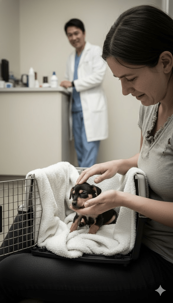 The next few days were a roller coaster of emotions. Pumpkin, the slightly stronger of the two, showed a glimmer of improvement, slowly accepting small amounts of liquid food. Banana, however, remained critically ill, her tiny frame barely responding. There were moments when Sarah and Dr. Lee exchanged worried glances, fearing the worst. “We’re doing everything we can,” Dr. Lee would say, his voice laced with concern, “but sometimes, nature has its own course.” Just as despair began to creep in, an unexpected turn occurred. One morning, as Sarah was gently stroking Banana’s head, the puppy let out a soft whimper and nudged her hand, a tiny, almost imperceptible sign of life that brought tears to Sarah’s eyes.