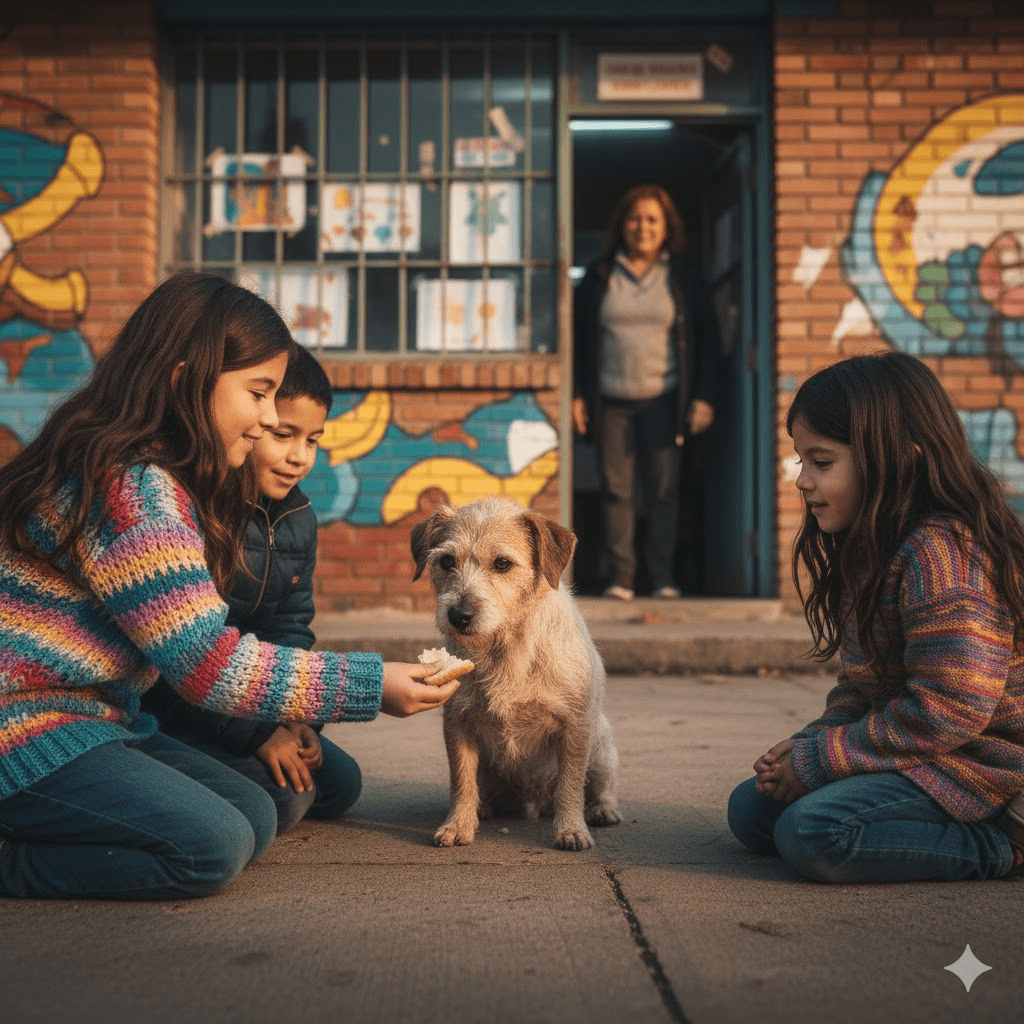 Her journey continued, driven by an instinct for survival. She navigated bustling markets, dodged speeding vehicles, and scavenged relentlessly. One afternoon, a group of boisterous children spotted her. Instead of shooing her away, they approached cautiously, offering her small pieces of bread. Marisol, wary but starving, devoured the offering, a tiny flicker of trust igniting in her weary eyes. These children, regulars at a local community center, often spoke of the animals they encountered, and Marisol’s story quickly reached the ears of Maria, the center’s kind-hearted director.