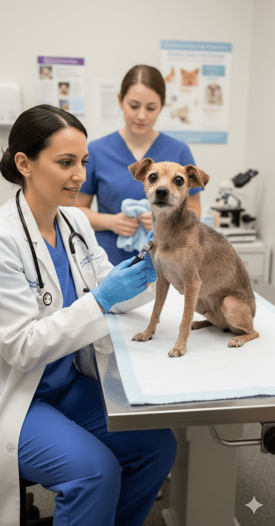 Back at the shelter, the extent of Scrappy’s suffering became heartbreakingly clear. Beyond the physical wounds—the severe malnutrition, advanced mange, and untreated infections—there was the deep psychological trauma. He recoiled from gentle hands, flinched at sudden movements, and his eyes, though beginning to show a glimmer of trust, often held a distant, haunted look. The veterinary team worked tirelessly, their dedication a testament to their commitment to every life, no matter how small or broken.