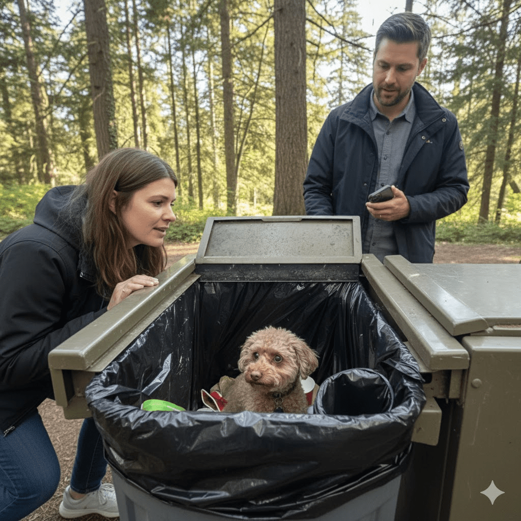 Terry Sparrow and Krista Brisk, enjoying a routine stroll amidst the lush greenery, stumbled upon a sight that would forever change their lives and the life of a small, defenseless creature. Peering into a seemingly innocuous public trash can, they didn’t find the usual discarded wrappers and forgotten coffee cups. Instead, amidst the refuse, a pair of wide, frightened eyes stared back. Curled up, barely visible amongst the trash, was a small, brown dog, abandoned and utterly helpless. The initial shock quickly gave way to a surge of protective urgency. How could an animal, a living, breathing being, be so cruelly discarded? This wasn’t just a sad finding; it was a profound act of neglect that ignited a fervent determination to save him. The innocent gaze of the dog, later named Oscar, became a silent plea, initiating a rescue mission that would unfold with unexpected twists and demonstrate the incredible power of human kindness.
