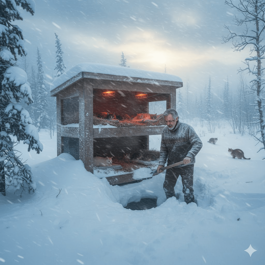 The biting winds of the Alaskan winter are relentless, a harsh mistress that sculpts the landscape in ice and snow, testing the resilience of every living creature. For a colony of feral cats living on the fringes of civilization, each sunset brought with it the terrifying promise of another night battling sub-zero temperatures, their lean bodies shivering against the unforgiving cold. They were ghosts of the wilderness, wary of human contact, their instincts honed by a lifetime of survival. Yet, their silent struggle did not go unnoticed. John, a reclusive woodcarver living in a cabin nestled deep within the snow-laden pines, had watched them for weeks, their fleeting shadows against the pristine snow a poignant reminder of the fragility of life. His heart ached for them, especially on nights when the mercury plummeted to unthinkable lows.