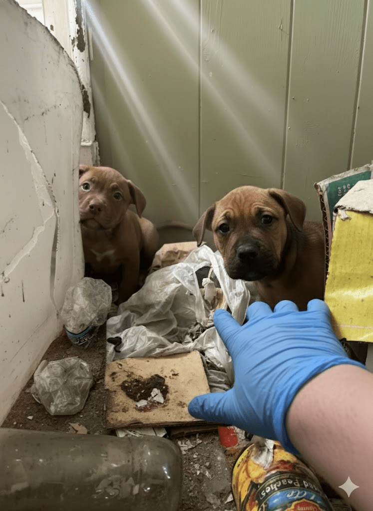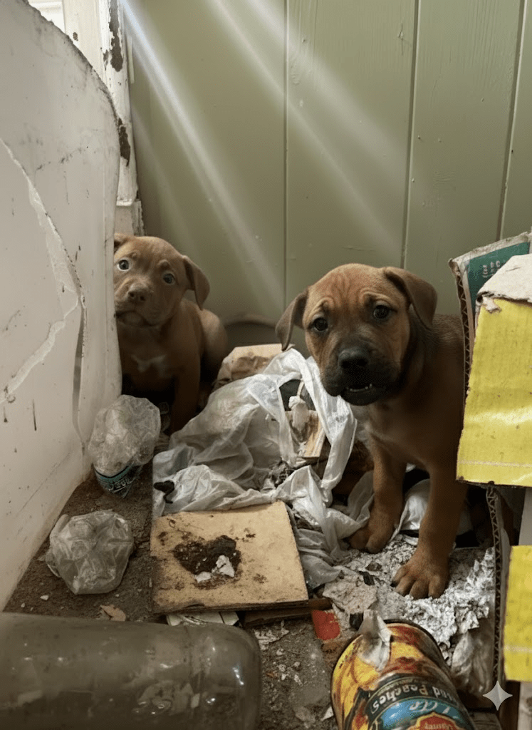 The discovery was unsettling. Tucked away in a forgotten corner of an abandoned property, two sets of wide, innocent eyes peered out from a makeshift nest of debris. The air was thick with the scent of neglect, and the surroundings spoke volumes of the desperation that had led these two young lives to such a predicament. It was a scene that would tug at even the most hardened heart – two small, vulnerable puppies, barely more than a few weeks old, surrounded by the refuse of human indifference. Their fur, a rich caramel hue, was dulled by grime, and their tiny bodies, though full of a surprising resilience, bore the subtle marks of hardship. This was not just a rescue; it was the beginning of a story far more intricate and emotionally charged than anyone could have anticipated, a narrative woven with threads of despair, unexpected kindness, and the enduring power of hope. The initial photograph, capturing their wary gaze amidst the squalor, became an emblem of their silent plea, sparking a chain of events that would ripple through the community and forever alter the course of their young lives.