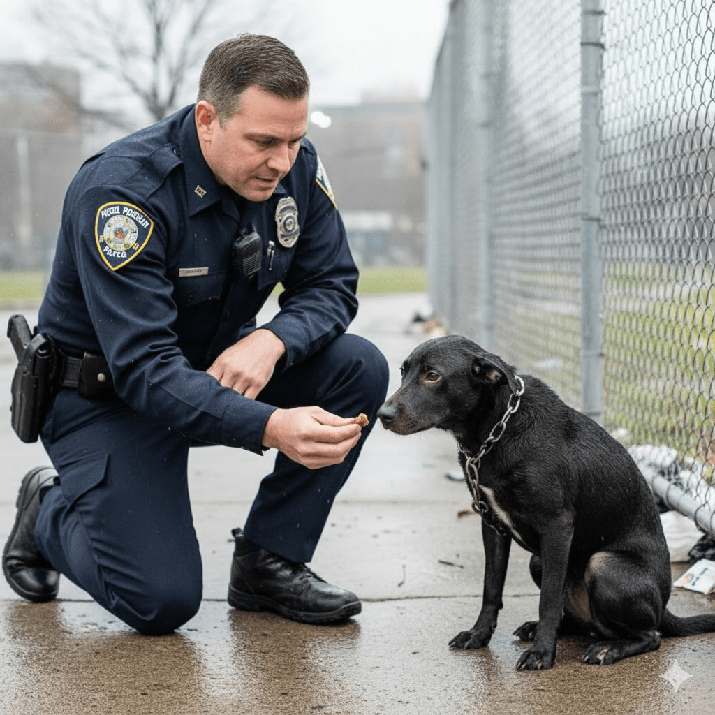 The chilling bite of an early morning wind swept through the desolate park, carrying with it not just the scent of damp earth but also a faint whimper. Officer Michael Pascale, on his routine patrol, initially dismissed it as the rustling of leaves or a trick of the wind. However, a persistent, mournful sound pricked at his senses, compelling him to investigate further. It was then, huddled by a chain-link fence, amidst a scattering of forgotten trash and the remnants of a recent downpour, that he saw him. A small, black dog, its fur matted and slick with rain, shivered uncontrollably. A heavy, ill-fitting metal chain dug into its neck, and its eyes, wide with a mixture of fear and despair, seemed to hold a silent plea. This was Joey, a pup whose young life had, until that moment, been a stark testament to neglect and loneliness. Pascale, a man accustomed to the gritty realities of city life, felt an unexpected pang in his chest. This was more than just an animal in distress; this was a sentient being on the brink, and a journey neither of them could have foreseen was about to begin.