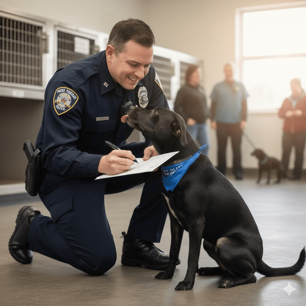 With gentle words and a soft hand, Officer Pascale approached the wary pup. Joey flinched, a clear sign of past trauma, but the officer’s calm demeanor and an offered piece of his lunch slowly began to chip away at the dog’s fear. The moment Pascale unhooked the heavy chain, a visible sigh of relief seemed to escape Joey. However, the immediate challenge wasn’t just getting Joey to trust him, but also the unexpected bureaucratic hurdles. Animal control was called, and regulations dictated a mandatory waiting period, a standard procedure for stray animals. Pascale, despite his growing attachment, had to leave Joey in the temporary care of the shelter, a decision that weighed heavily on him. He found himself thinking about the little black dog throughout his shift, an unusual distraction for the seasoned officer.