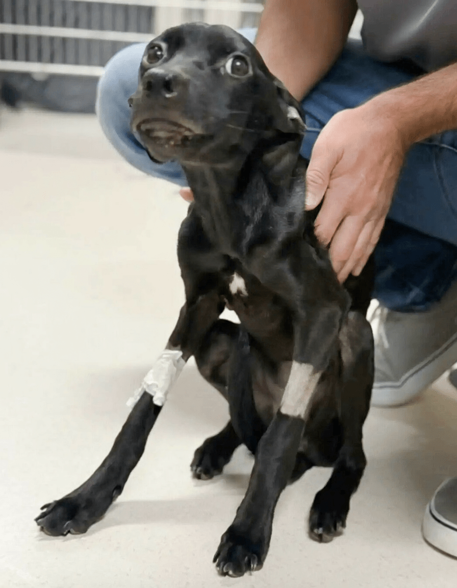 The shelter’s overnight veterinarian, Dr. Maya Patel, took one look at the puppy and knew the odds were grim. The pup—later named Pumpkin by staff—weighed just 4.2 pounds, less than half the average for a Labrador mix of his age. Bloodwork revealed severe anemia, dehydration, and a parasitic load that had likely been feasting on him for weeks. The makeshift splint had cut off circulation; the leg beneath was necrotic. “We prepped for euthanasia,” Dr. Patel admitted in a staff meeting the next morning. “But then he did something I’ll never forget.” As the tech lifted Pumpkin onto the exam table, the puppy craned his neck and licked the tech’s wrist—once, weakly, but deliberately. In a room full of seasoned rescuers, that tiny gesture sparked a collective refusal to give up.