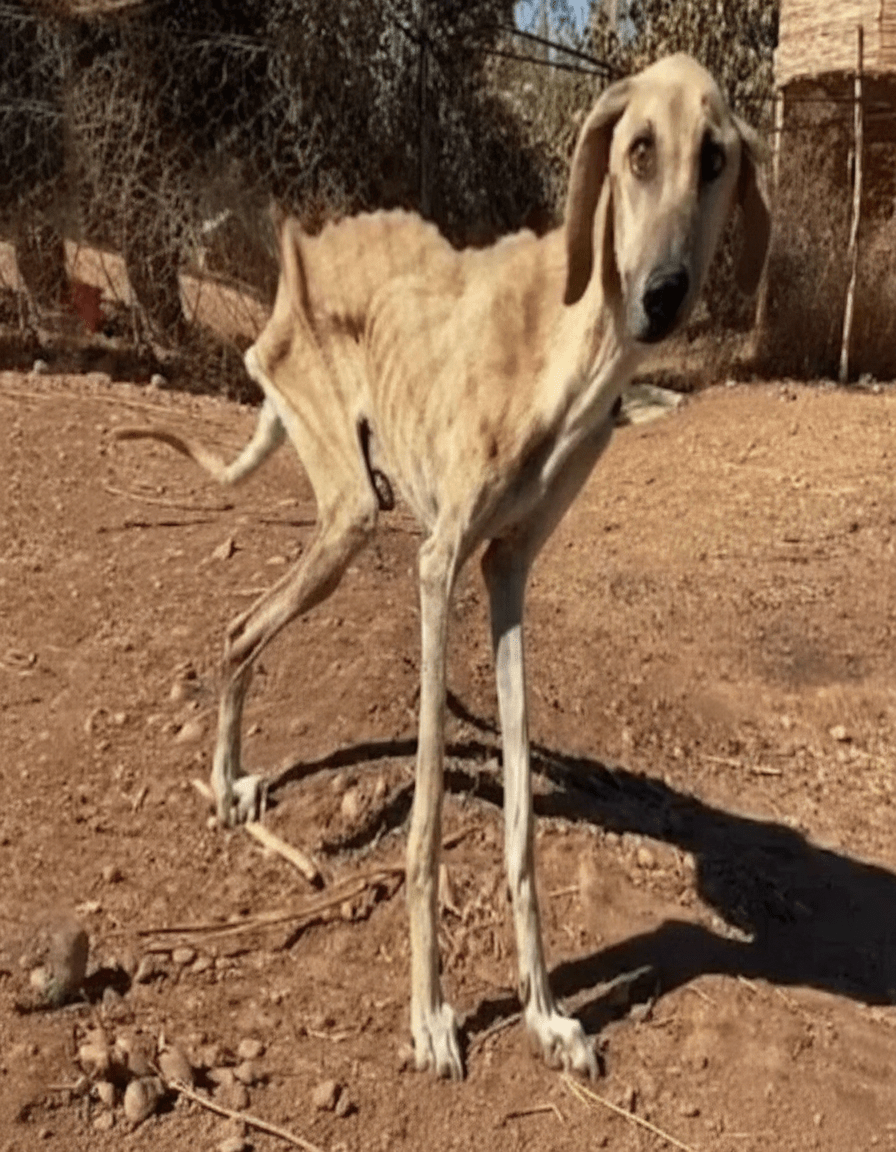 Javier, a father of three with a soft spot for strays, didn’t hesitate. He wrapped the dog in his denim jacket, cradled him like a child, and sped toward the nearest veterinary clinic, 27 miles away in downtown Lubbock. Dr. Elena Vasquez, a veterinarian known for taking on the toughest cases, later recalled the moment Sam was carried through her doors. “I’ve seen starvation before,” she told reporters, “but this was different. His body temperature was 94 degrees—hypothermic despite the 80-degree weather. His heart rate was erratic, and maggots had infested the wound on his leg. Frankly, I gave him hours, not days.” Bloodwork revealed severe anemia, kidney stress, and a parasite load that would fell a healthy dog twice his size. Sam weighed just 28 pounds; for his presumed Saluki-greyhound mix frame, he should have tipped the scales at 55.