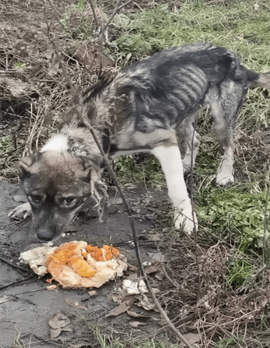 In the frost-bitten outskirts of a small Andalusian village near Málaga, Spain, on a bitterly cold January morning in 2023, a local olive farmer named Miguel Ortega stumbled upon a sight that would haunt him for weeks. Hidden among thorny brambles and discarded rubbish, two emaciated dogs—little more than skeletons wrapped in matted fur—were desperately gnawing at a moldy, half-eaten pizza crust crawling with maggots. The larger of the two, a medium-sized mixed-breed with patchy black-and-white fur, could barely lift his head. His ribs protruded like the keys of a broken xylophone, his spine a jagged ridge beneath translucent skin. His companion, a smaller terrier mix, trembled violently, her eyes clouded with infection. The dogs were tethered to a rusted iron stake with a frayed rope, their water bowl overturned and bone-dry. What Miguel didn’t know then was that the larger dog—later named Rico—would become the subject of one of the most astonishing animal recovery stories ever documented in Europe, a tale of near-death, improbable survival, and the unbreakable bond between human compassion and canine resilience.