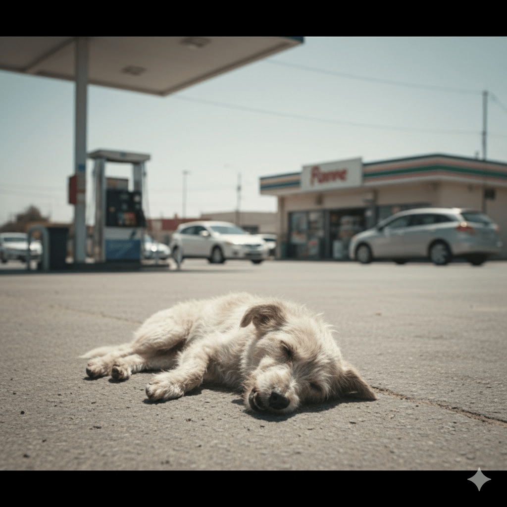The desolate stretch of asphalt shimmered under the unforgiving midday sun, a silent testament to the countless journeys that began and ended at the dusty marine gas station. It was here, amidst the hum of engines and the transient lives of travelers, that a tiny, matted creature lay, barely clinging to life. This was Axl, a small dog whose world had been brutally upended by the unforgiving impact of a speeding vehicle days prior. His whimpers were almost inaudible, drowned out by the everyday cacophony, his eyes clouded with pain and resignation.