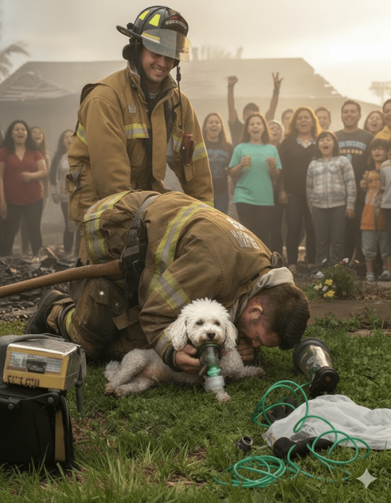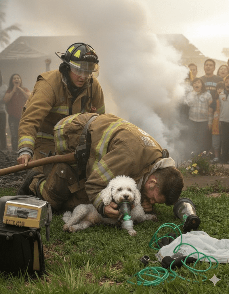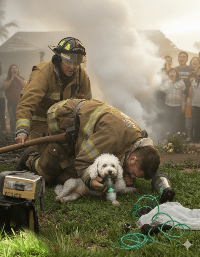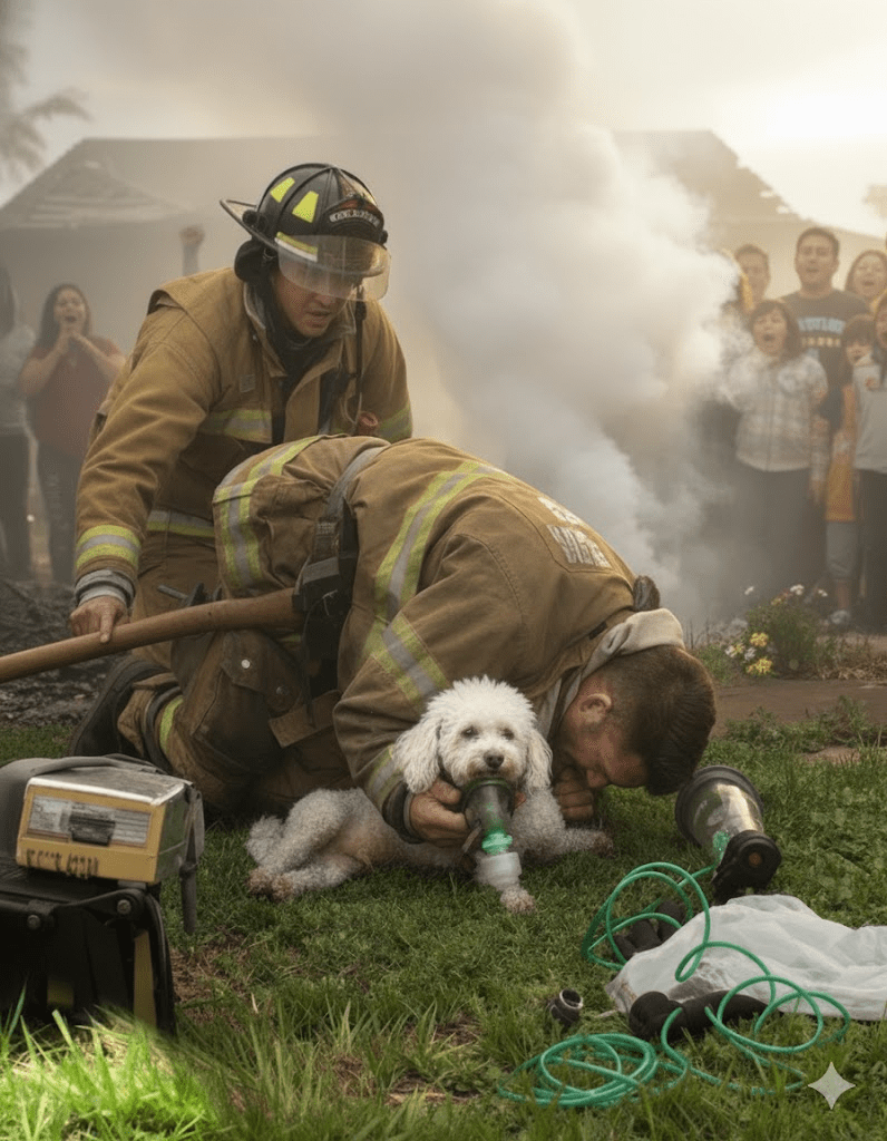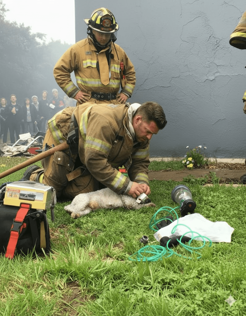 The acrid smell of smoke still hung heavy in the air, a stark reminder of the inferno that had just been battled. Firefighter Michael O’Connell, his face streaked with soot and exhaustion etched into every line, knelt on the scorched grass. Before him lay a small, motionless bundle of fur – a tiny poodle, rescued from the clutches of the blaze that had engulfed its home. The family, now safe but distraught, watched with bated breath, their hopes flickering like the embers in the distance. Michael, a veteran of countless fires, knew that every second counted. He had seen too much loss, too many tragedies, and in that moment, the weight of a tiny life rested squarely on his broad shoulders. He began to administer oxygen, his movements precise and practiced, a silent prayer escaping his lips for the little creature clinging to life. It was a scene of quiet heroism, a testament to the unwavering dedication of those who run towards danger when others flee.